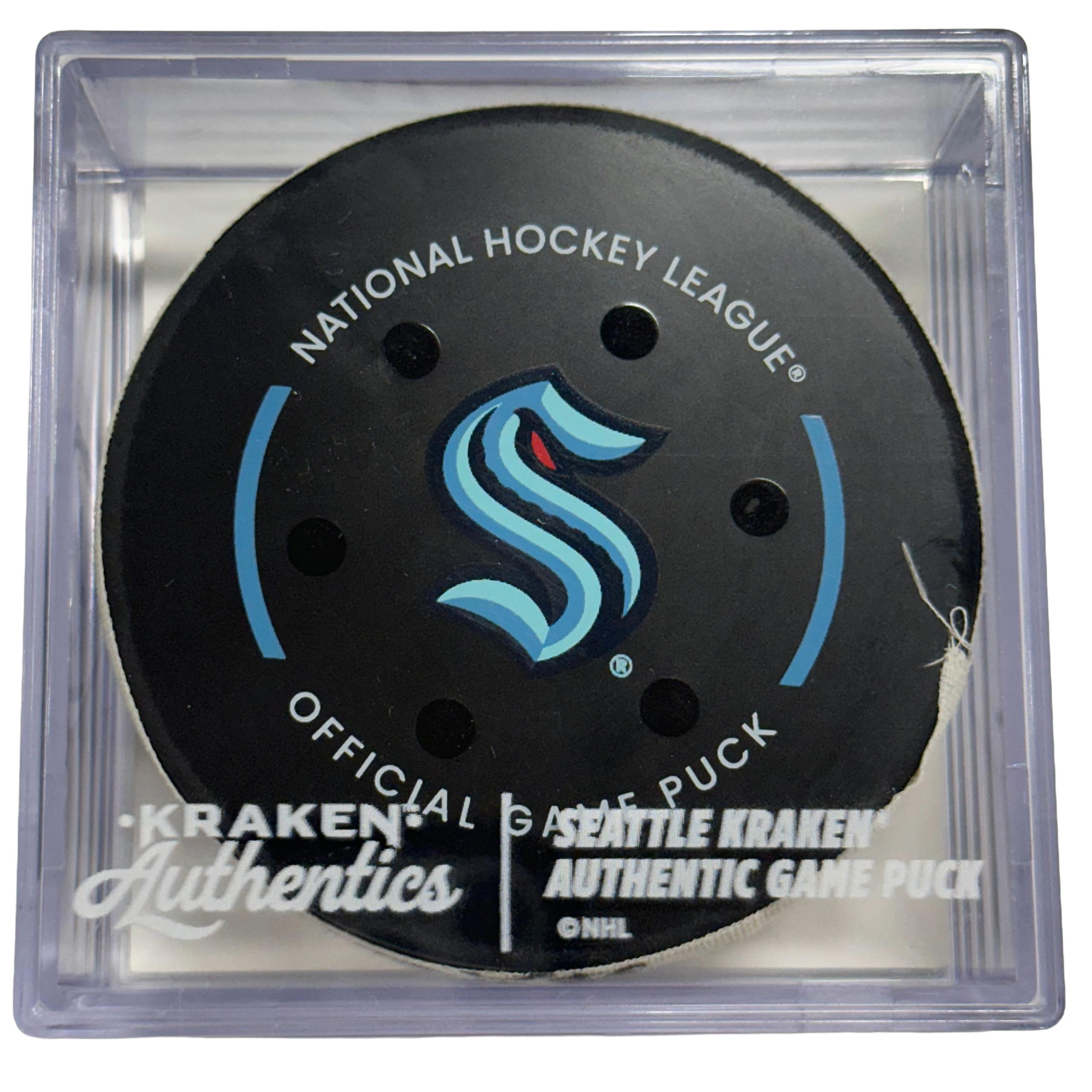 Official game-used goal puck from the Seattle Kraken vs. Vancouver Canucks game on December 29th 2025.