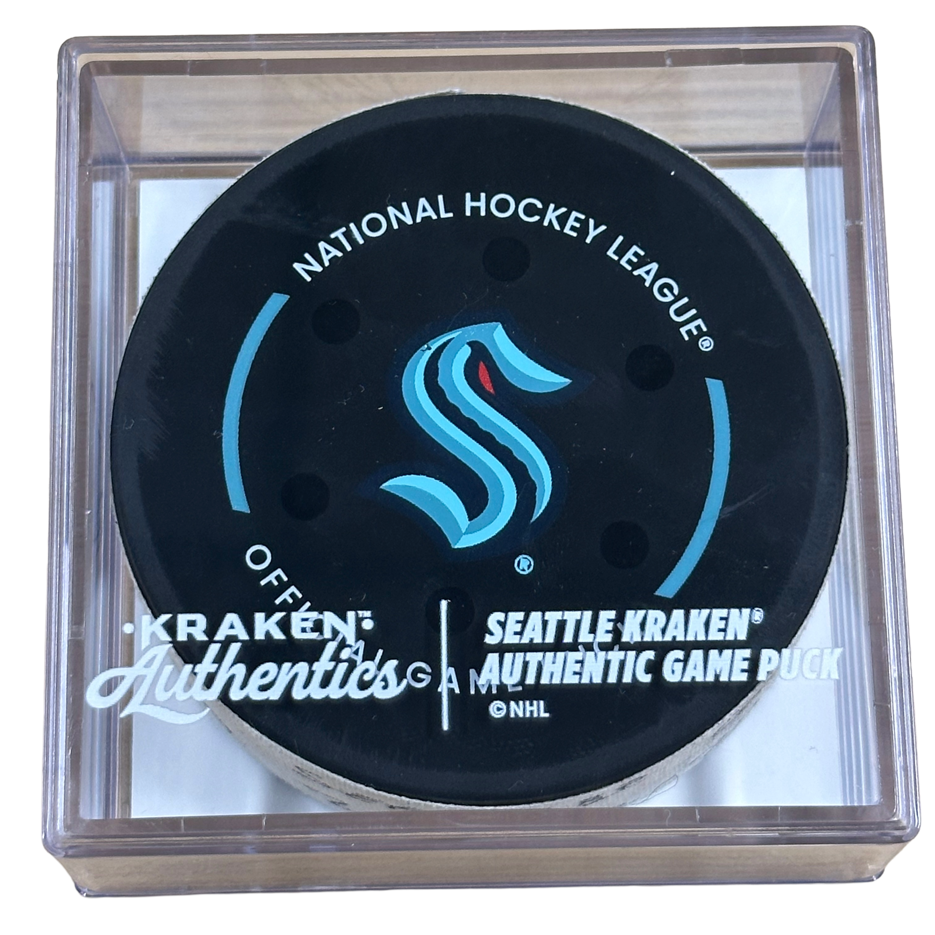 Official game used puck from the Seattle Kraken against the Detroit Red Wings on December 6th, 2025.