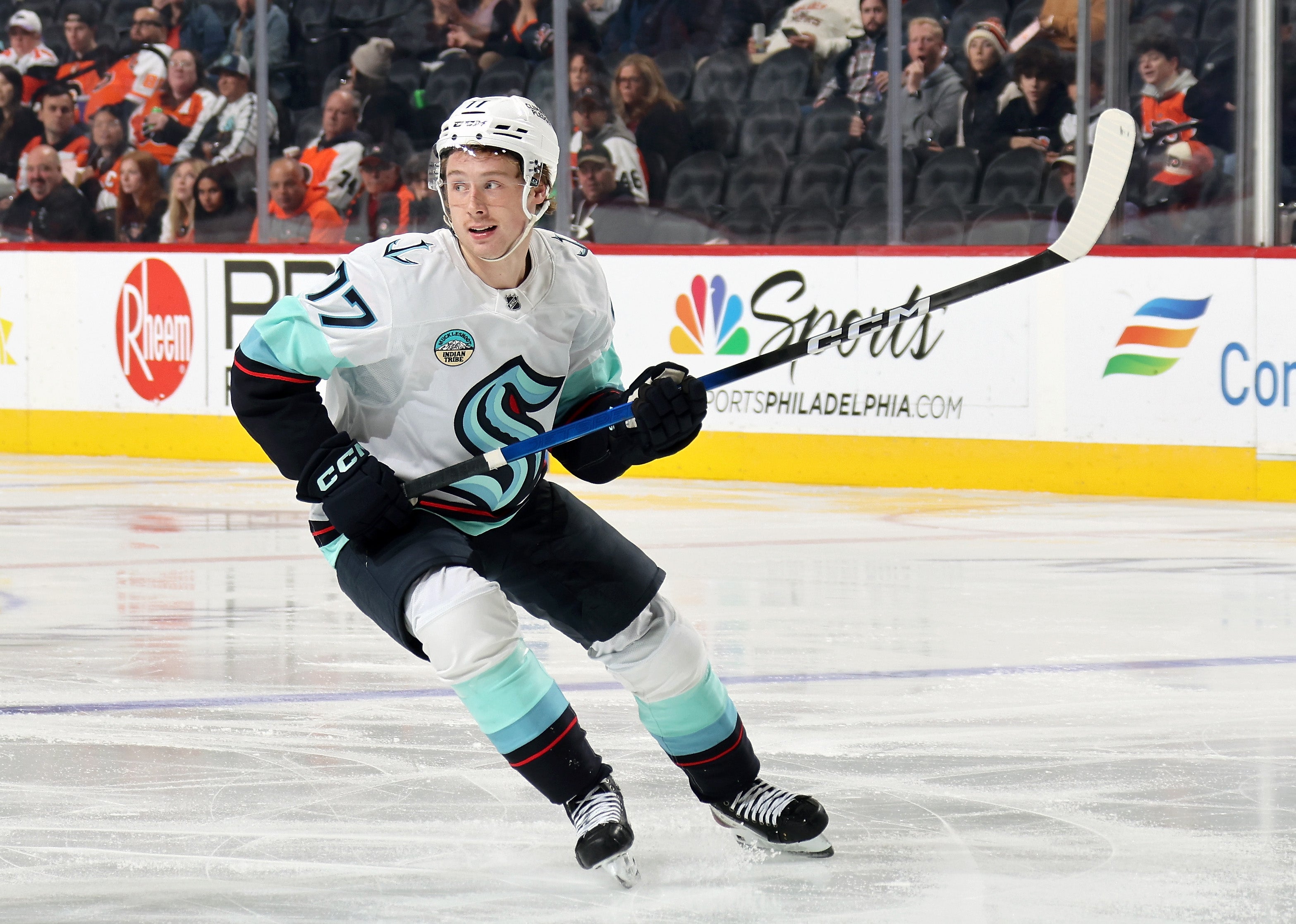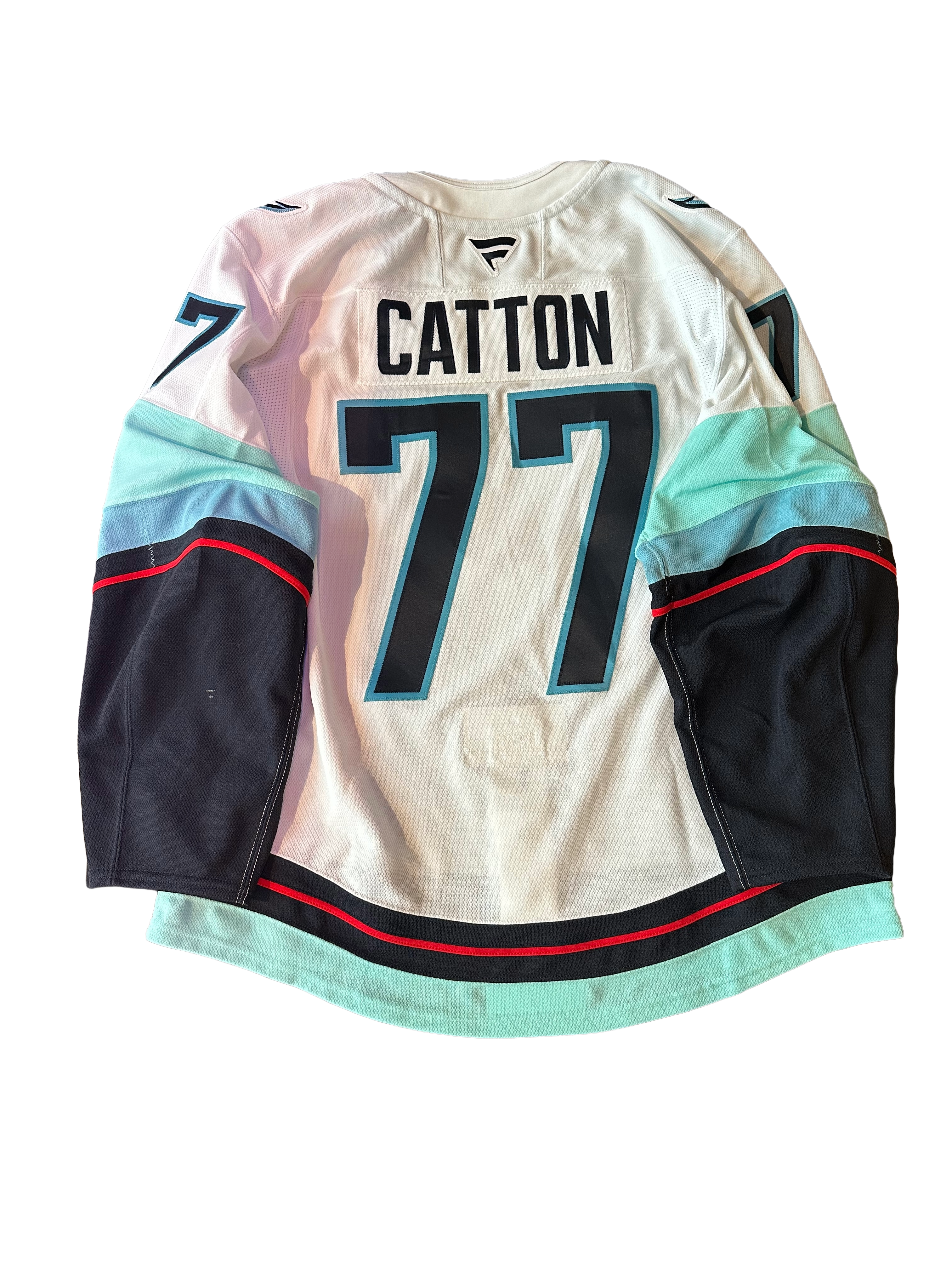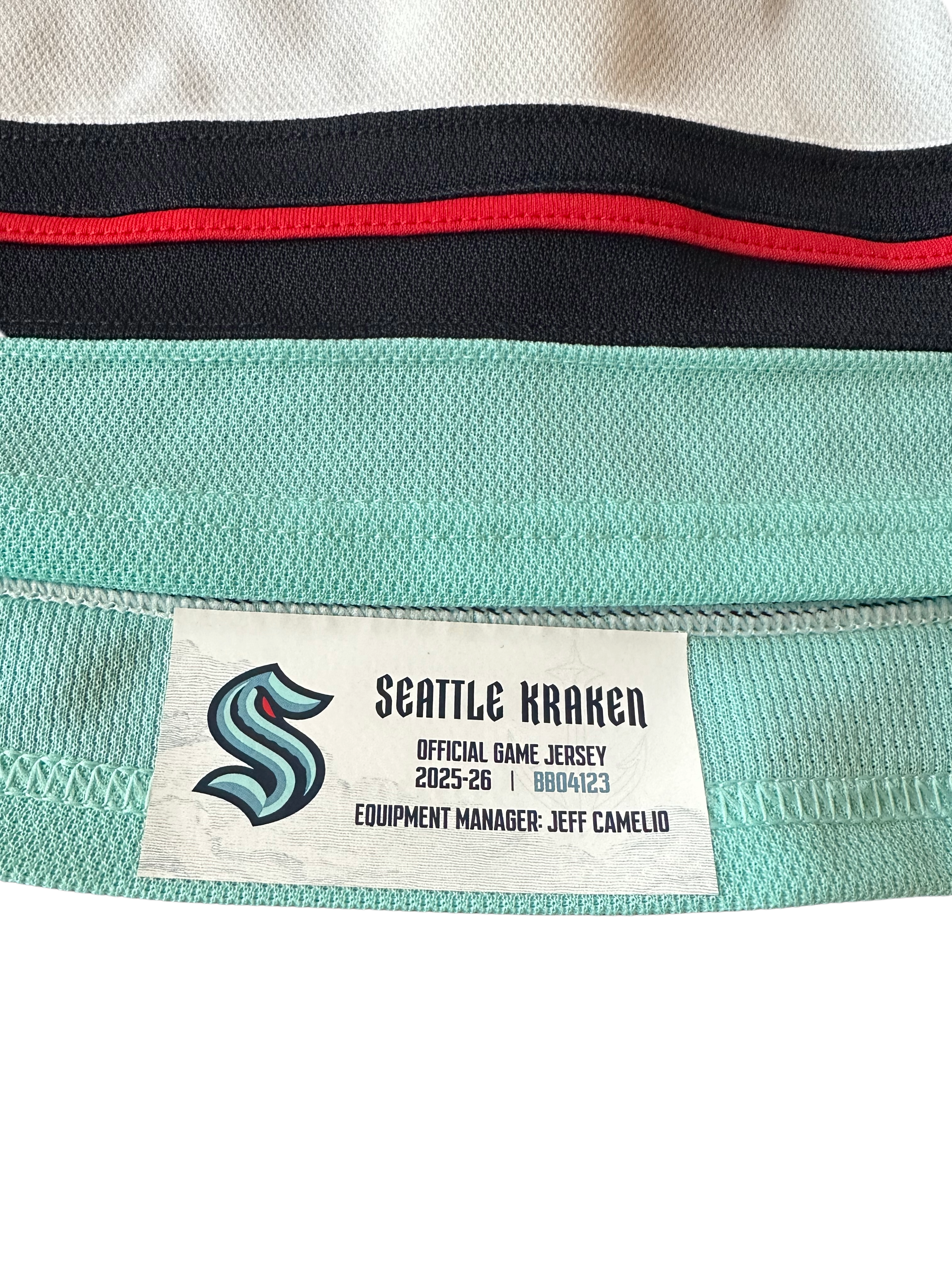 Own a historic piece of Seattle Kraken history with this game-worn jersey, worn by Berkly Catton during his NHL debut on October 20, 2025.