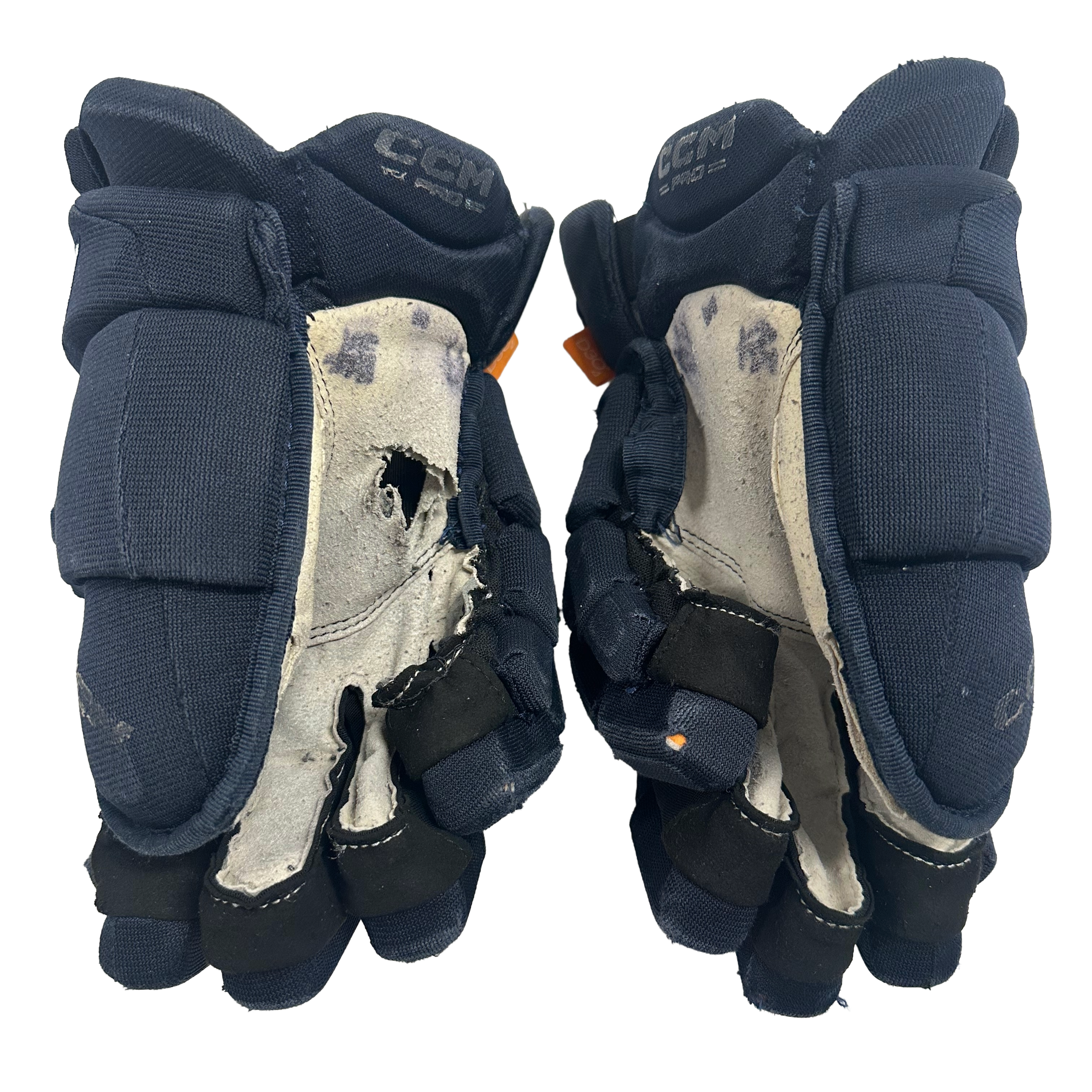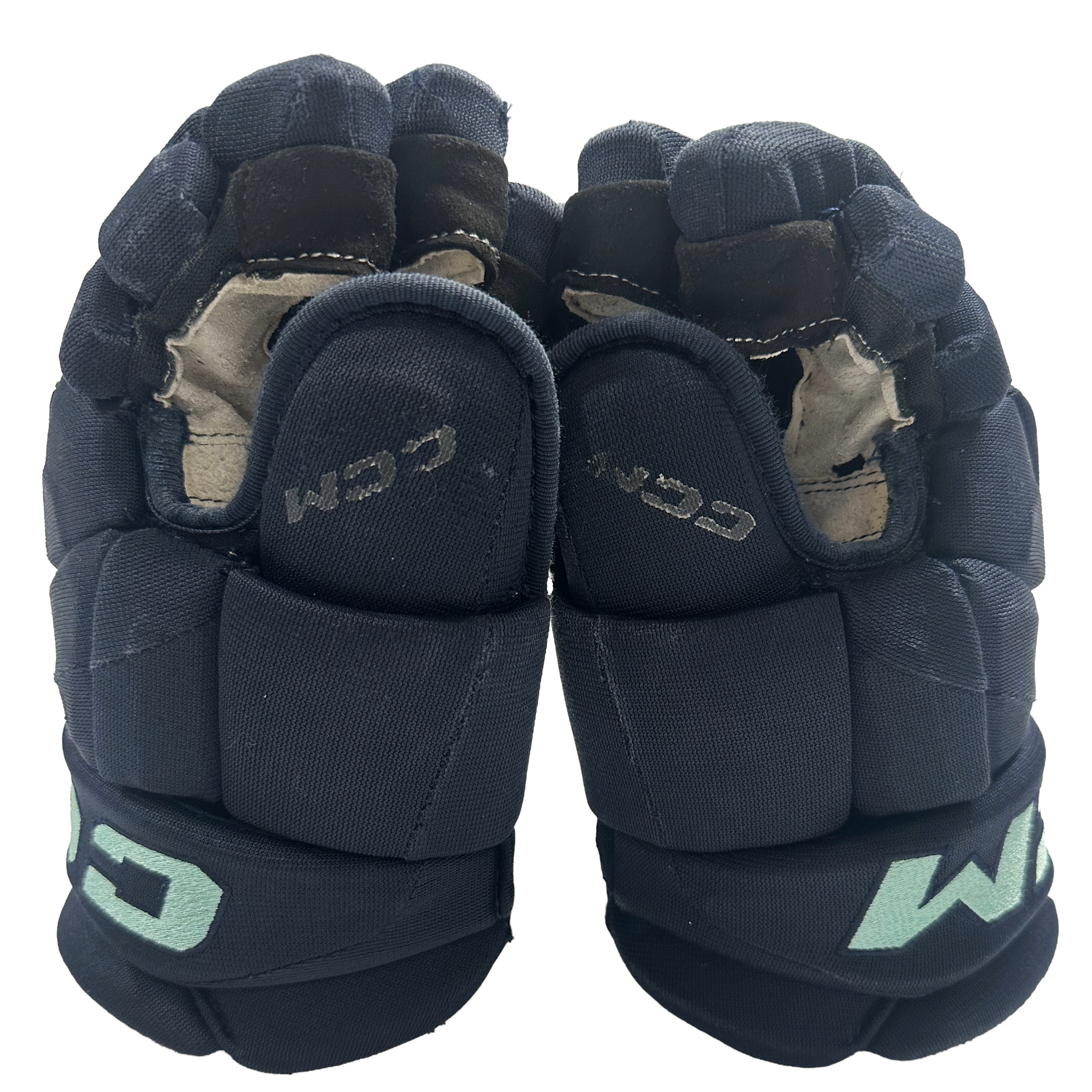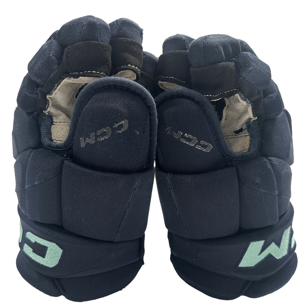 Details: These gloves were worn by Berkly Catton during official NHL game action in the 2025–26 season with the Seattle Kraken.