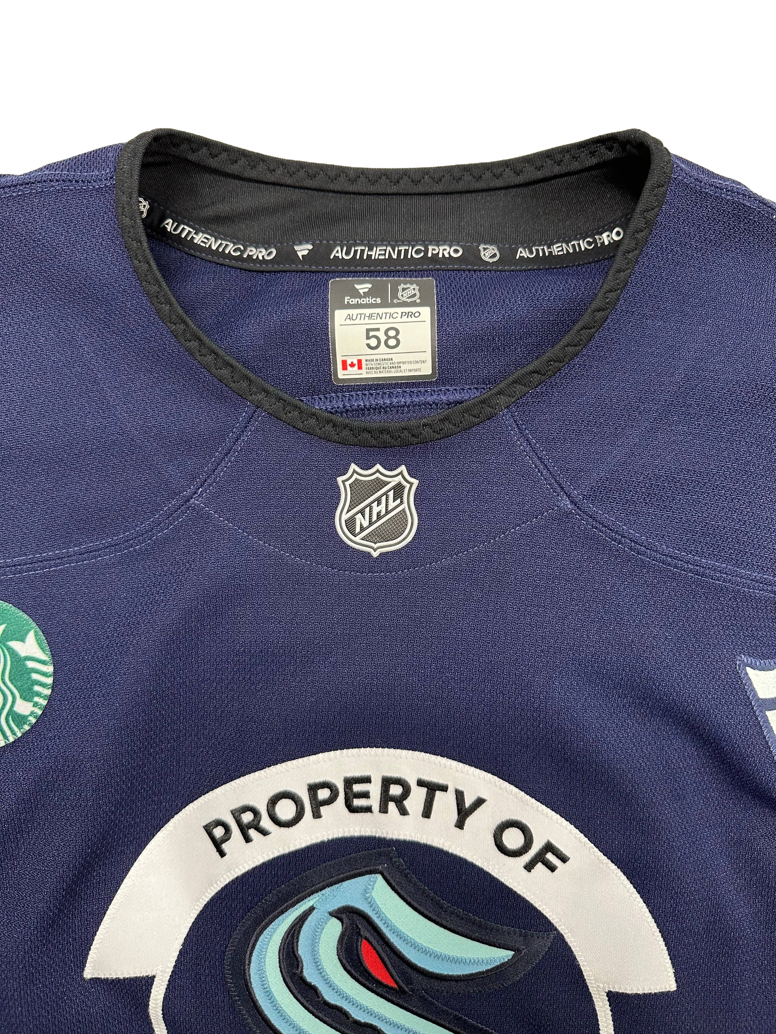 Each jersey includes an official Kraken Authentics Certificate of Authenticity, signed and serial-numbered, verifying that this is a genuine team-worn item.