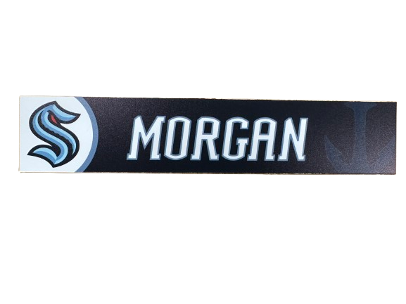 Details: Features the Seattle Kraken logo and player’s name/number as displayed above their locker during the season.