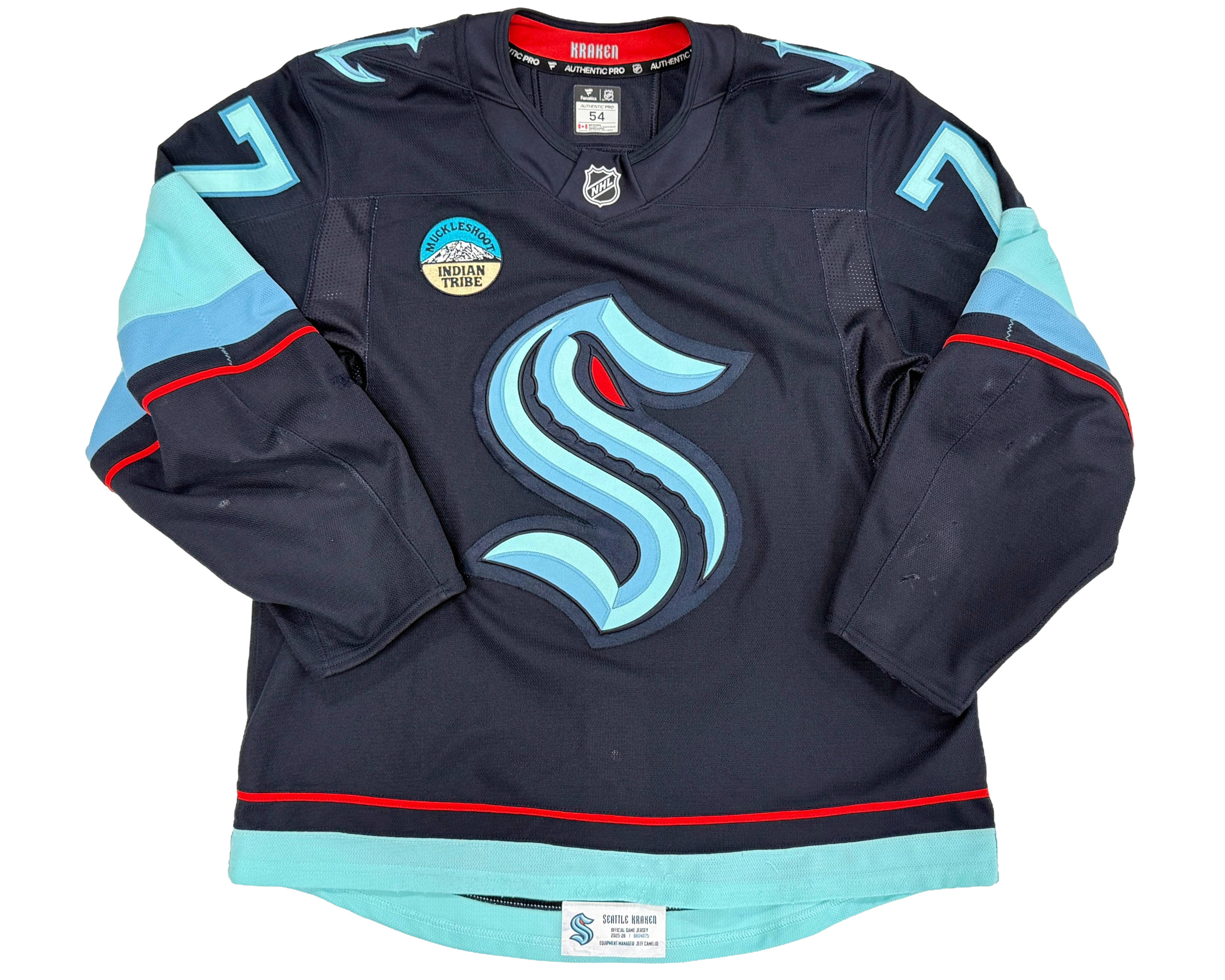The jersey is part of the Kraken Authentics online auction running from February 28 through March 7. Select jerseys from this auction will be displayed at the Kraken Authentics shop located behind Section 108 at Climate Pledge Arena during the auction period.