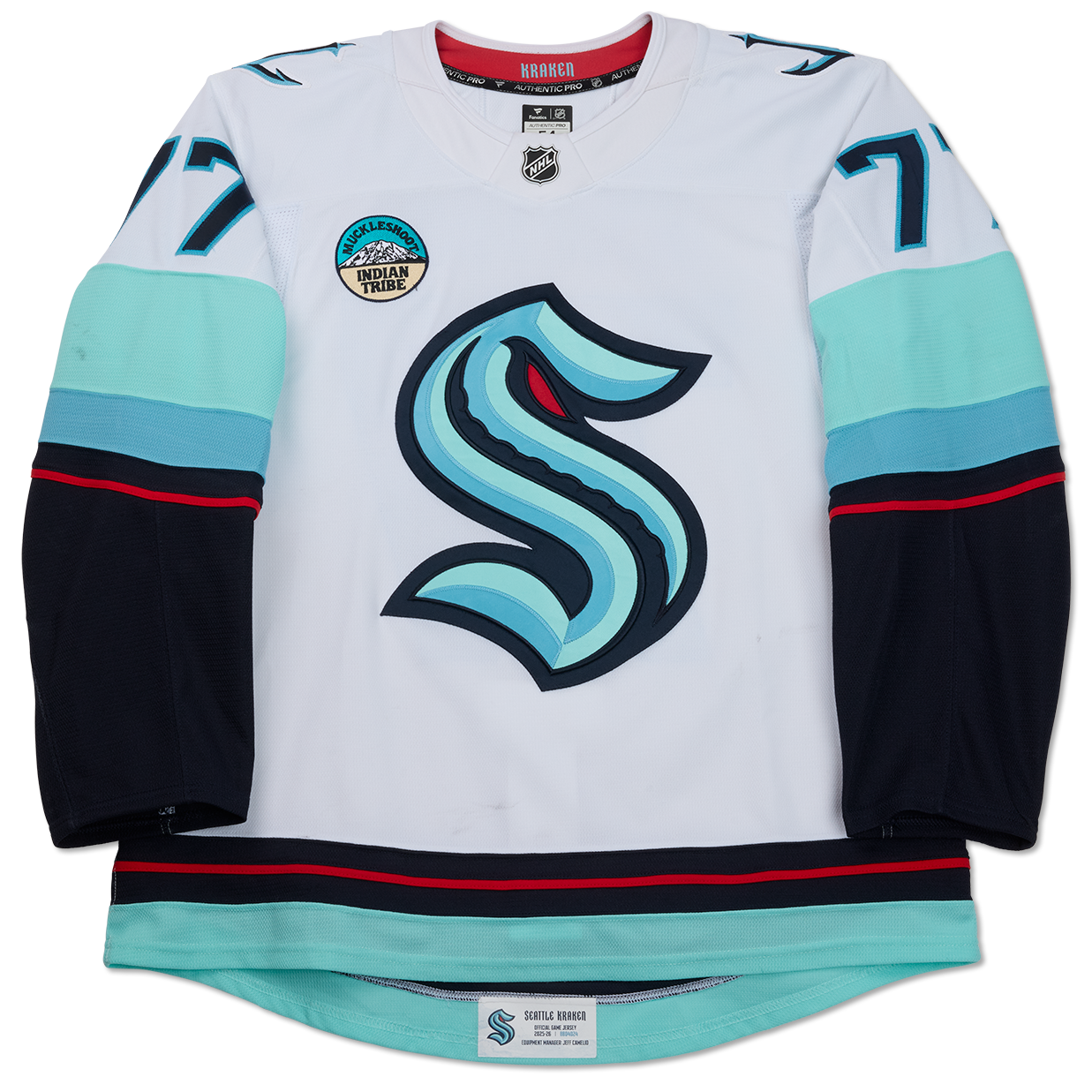 The jersey is part of the Kraken Authentics online auction. Select jerseys from this auction will be displayed at the Kraken Authentics shop located behind Section 108 at Climate Pledge Arena during the auction period.