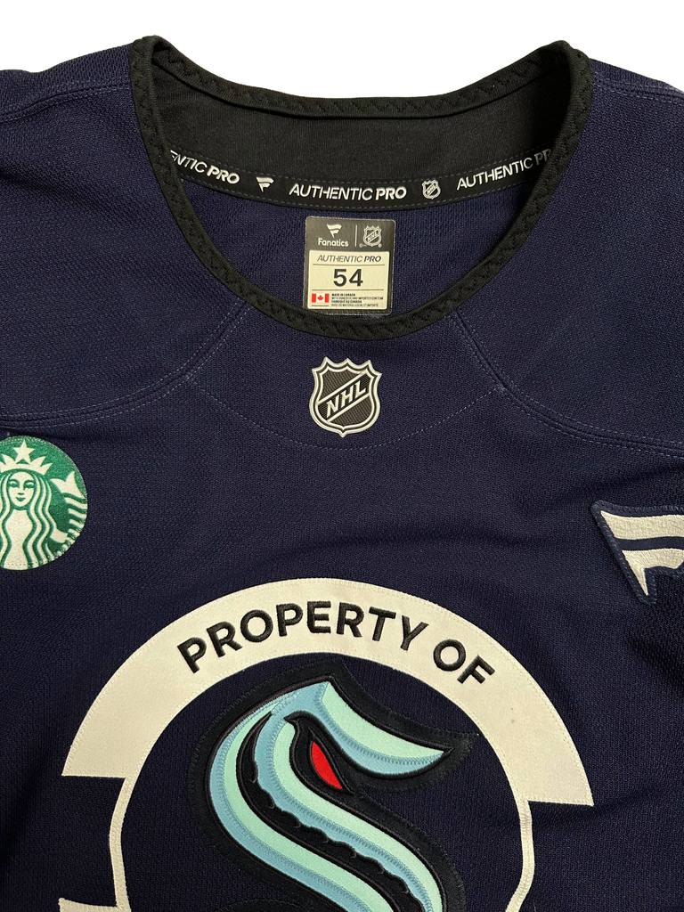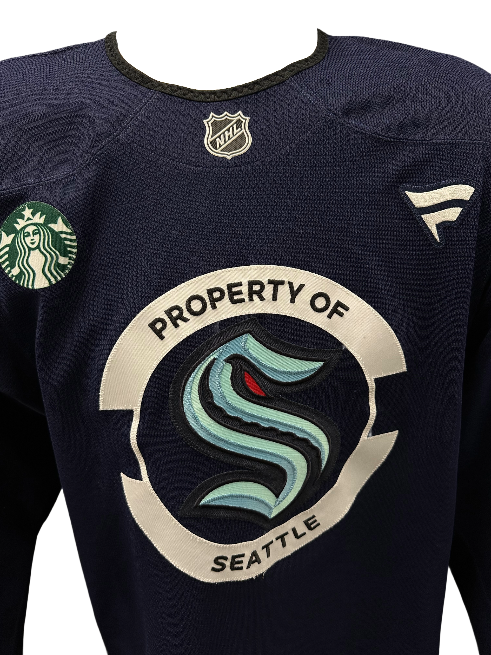 Each jersey includes an official Kraken Authentics Certificate of Authenticity, signed and serial-numbered, verifying that this is a genuine team-worn item.