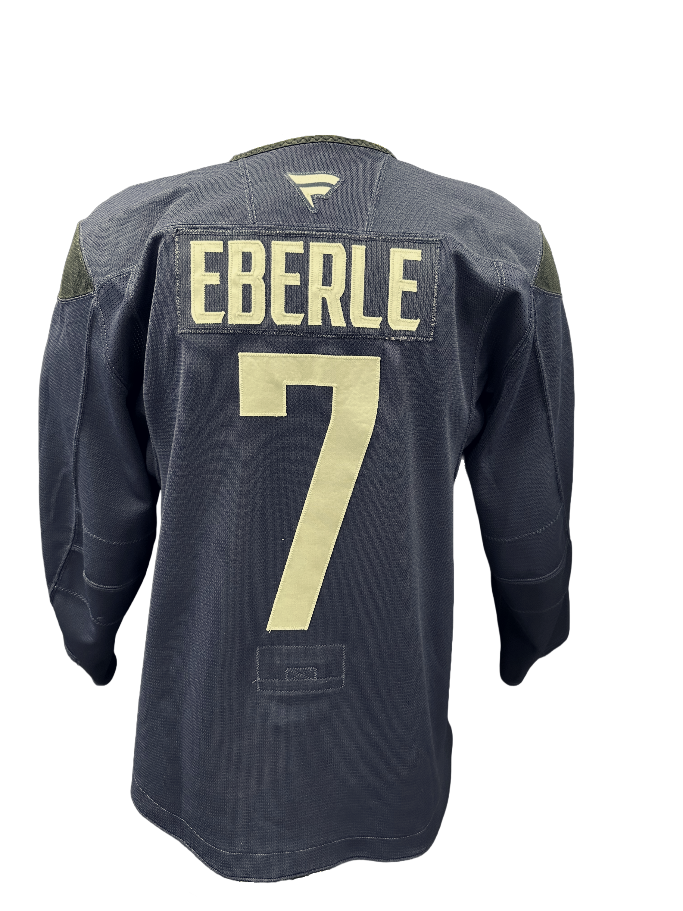 This official Seattle Kraken practice jersey was worn by Jordan Eberle during team practices and training sessions. As a genuine used team-issued item, it may display visible signs of wear such as puck marks, board paint, minor fabric wear, or other authentic use from on-ice action.