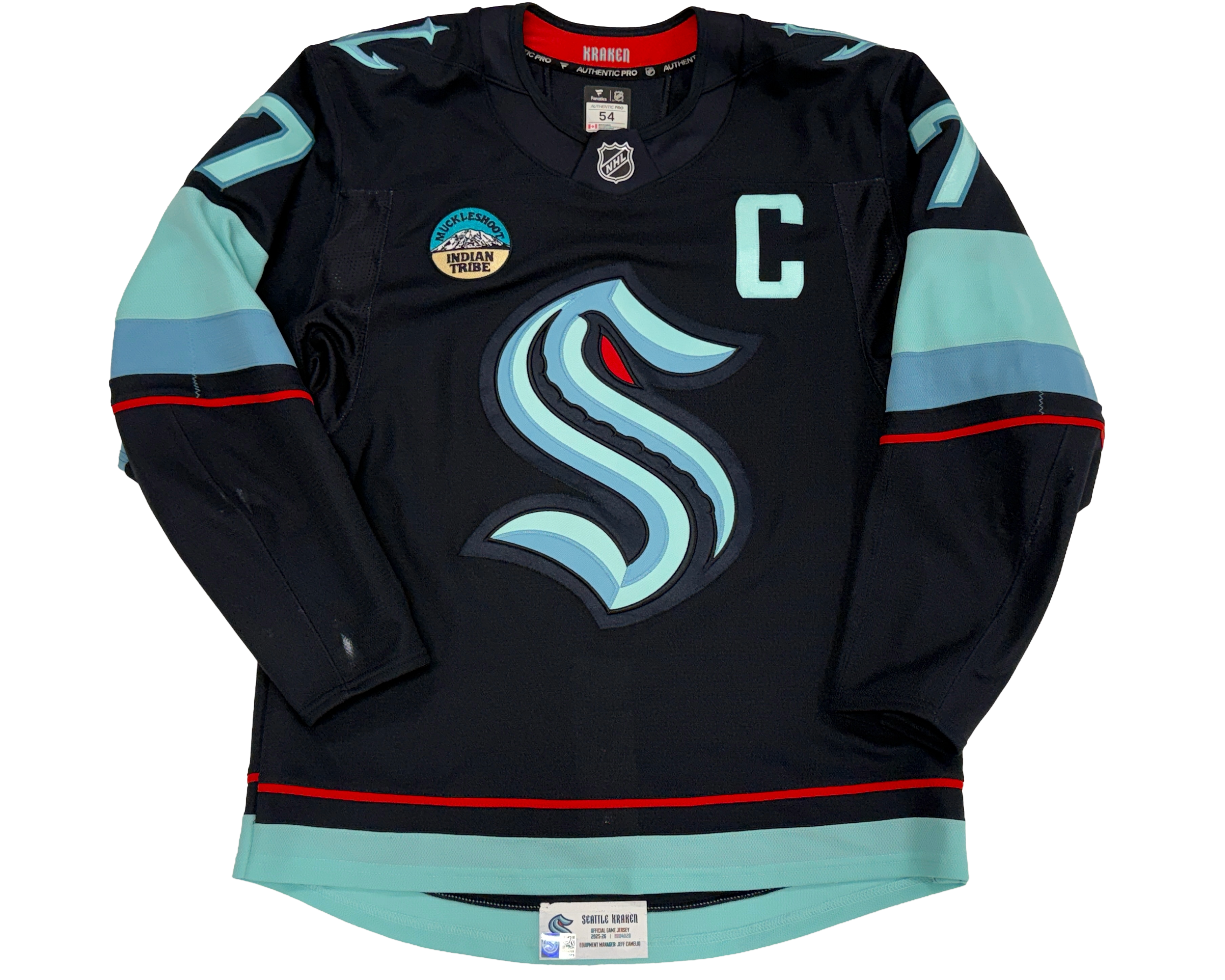 The jersey is part of the Kraken Authentics online auction running from February 28 through March 7. Select jerseys from this auction will be displayed at the Kraken Authentics shop located behind Section 108 at Climate Pledge Arena during the auction period.