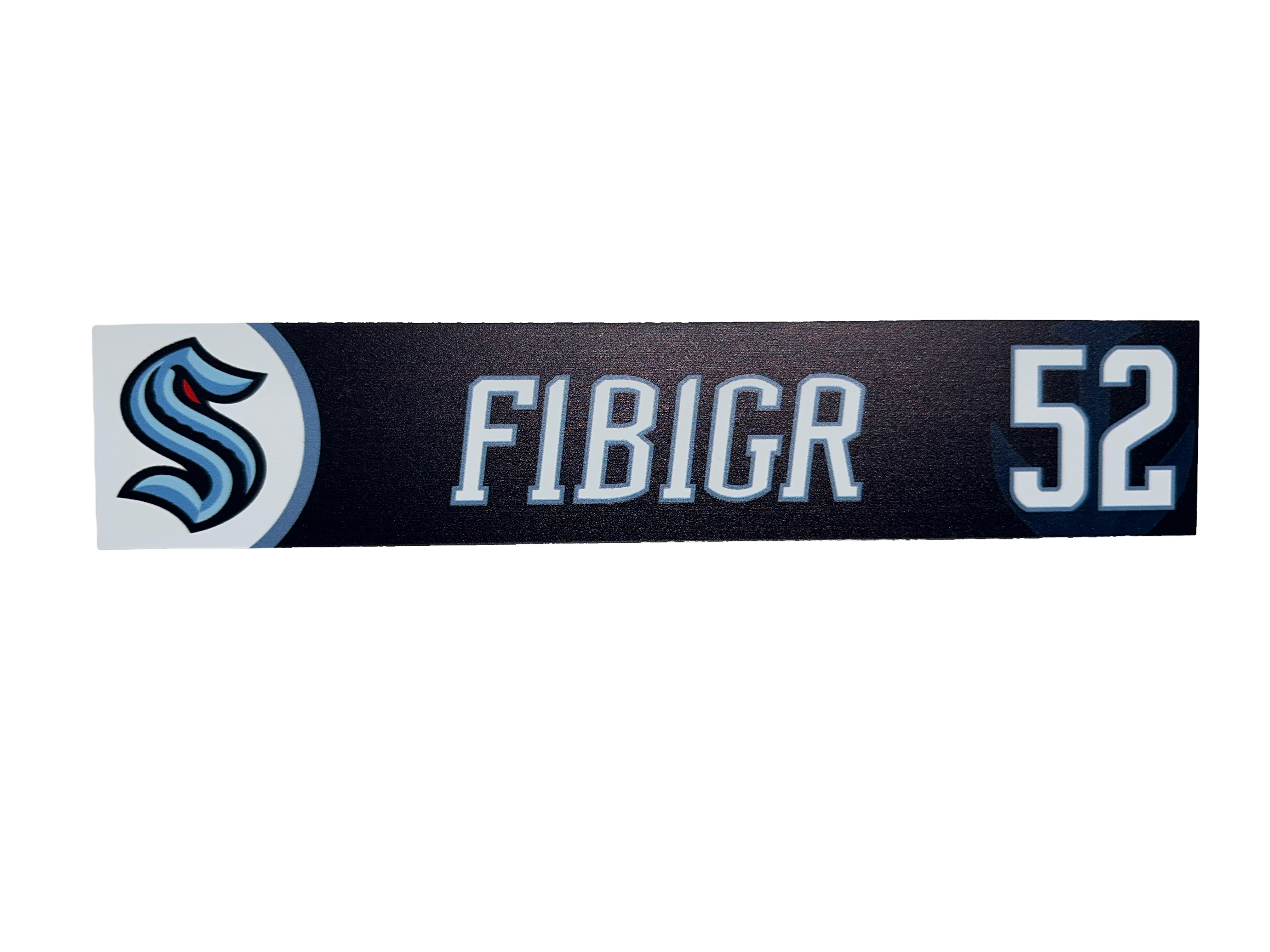 Details: Features the Seattle Kraken logo and player’s name/number as displayed above their locker during the season.