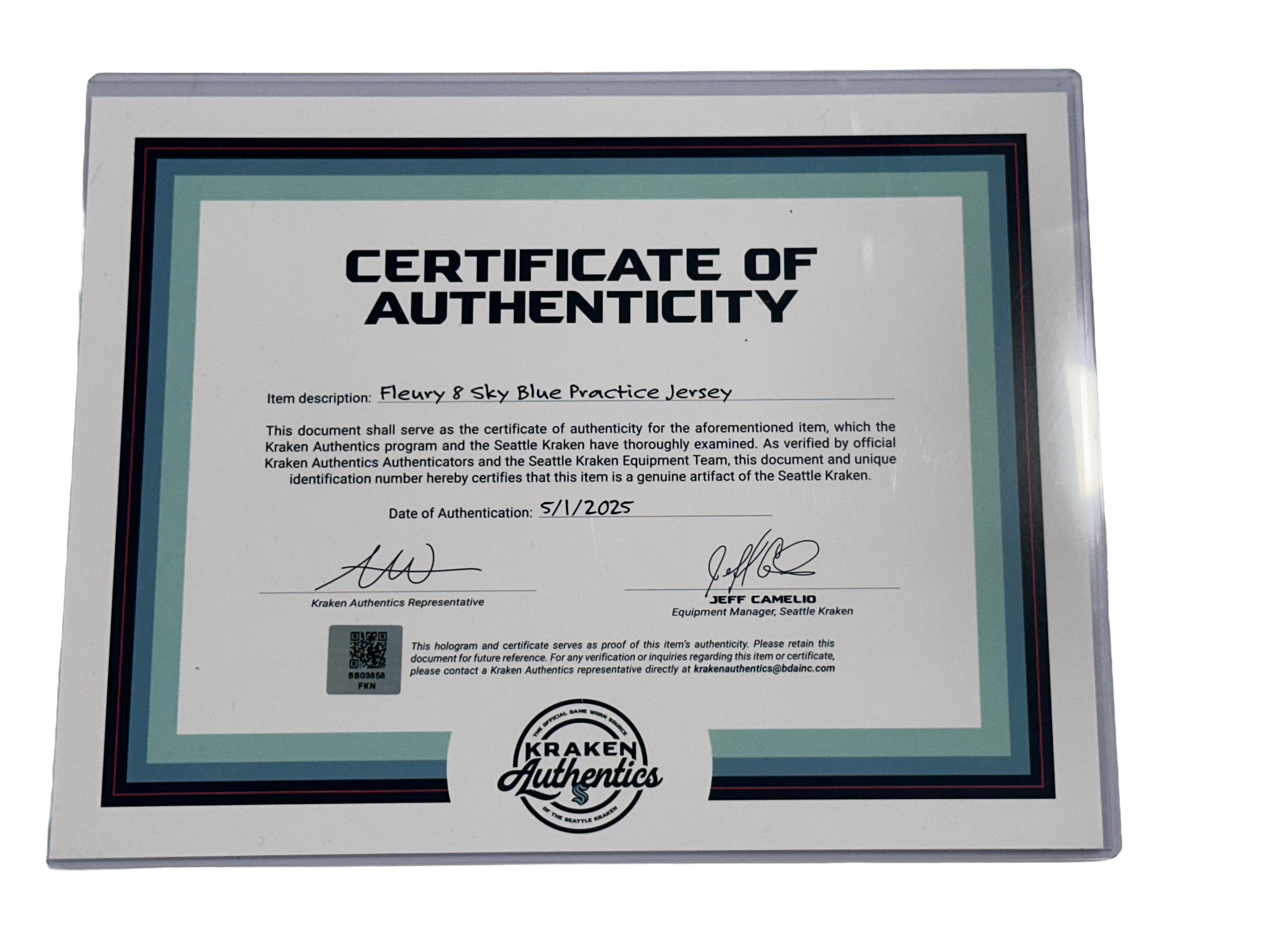Each jersey includes an official Kraken Authentics Certificate of Authenticity, verifying that this is a genuine team-worn item.