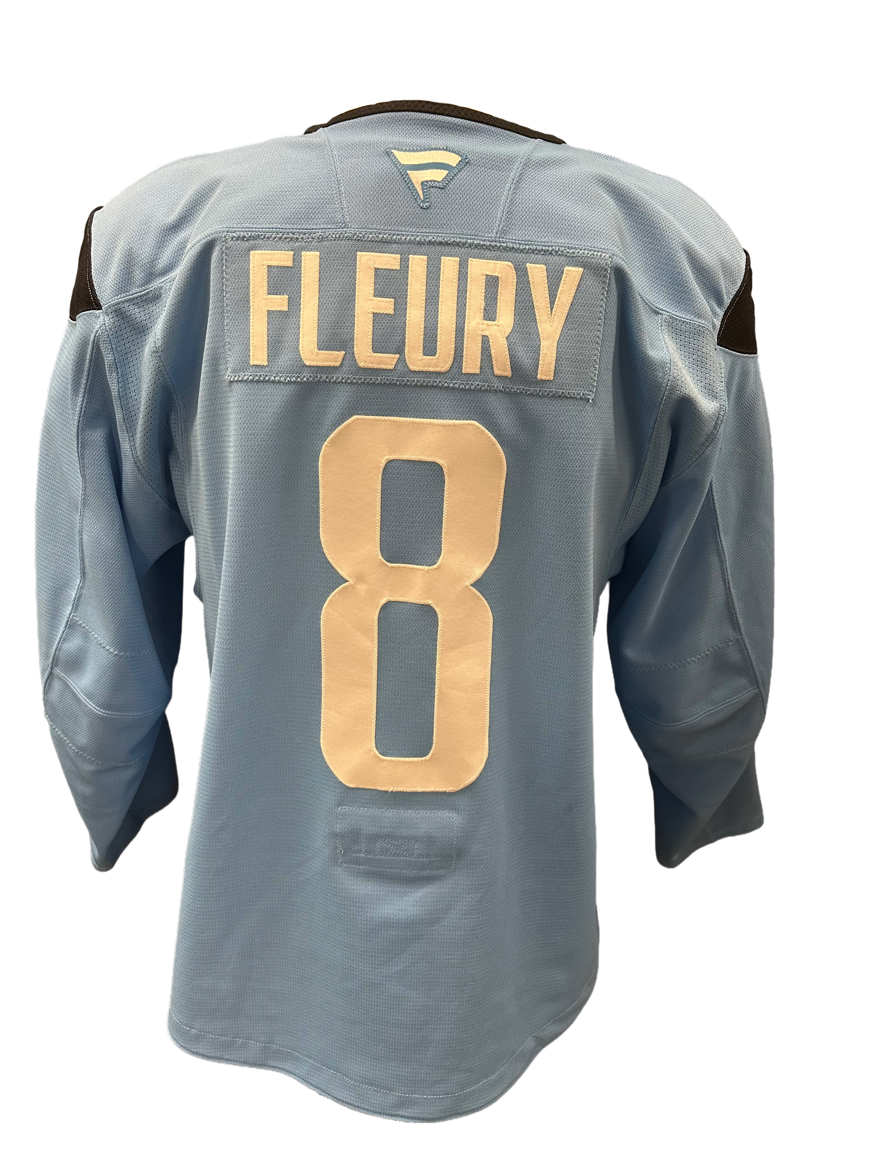 This official Seattle Kraken practice jersey was worn by Cale Fleury during team practices and training sessions. As a genuine used team-issued item, it may display visible signs of wear such as puck marks, board paint, minor fabric wear, or other authentic use from on-ice action.