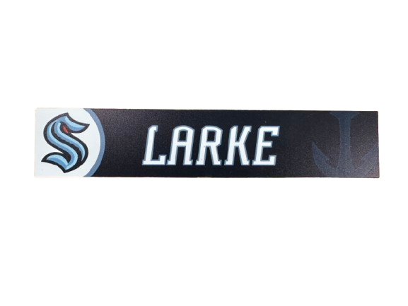 Details: Features the Seattle Kraken logo and player’s name/number as displayed above their locker during the season.