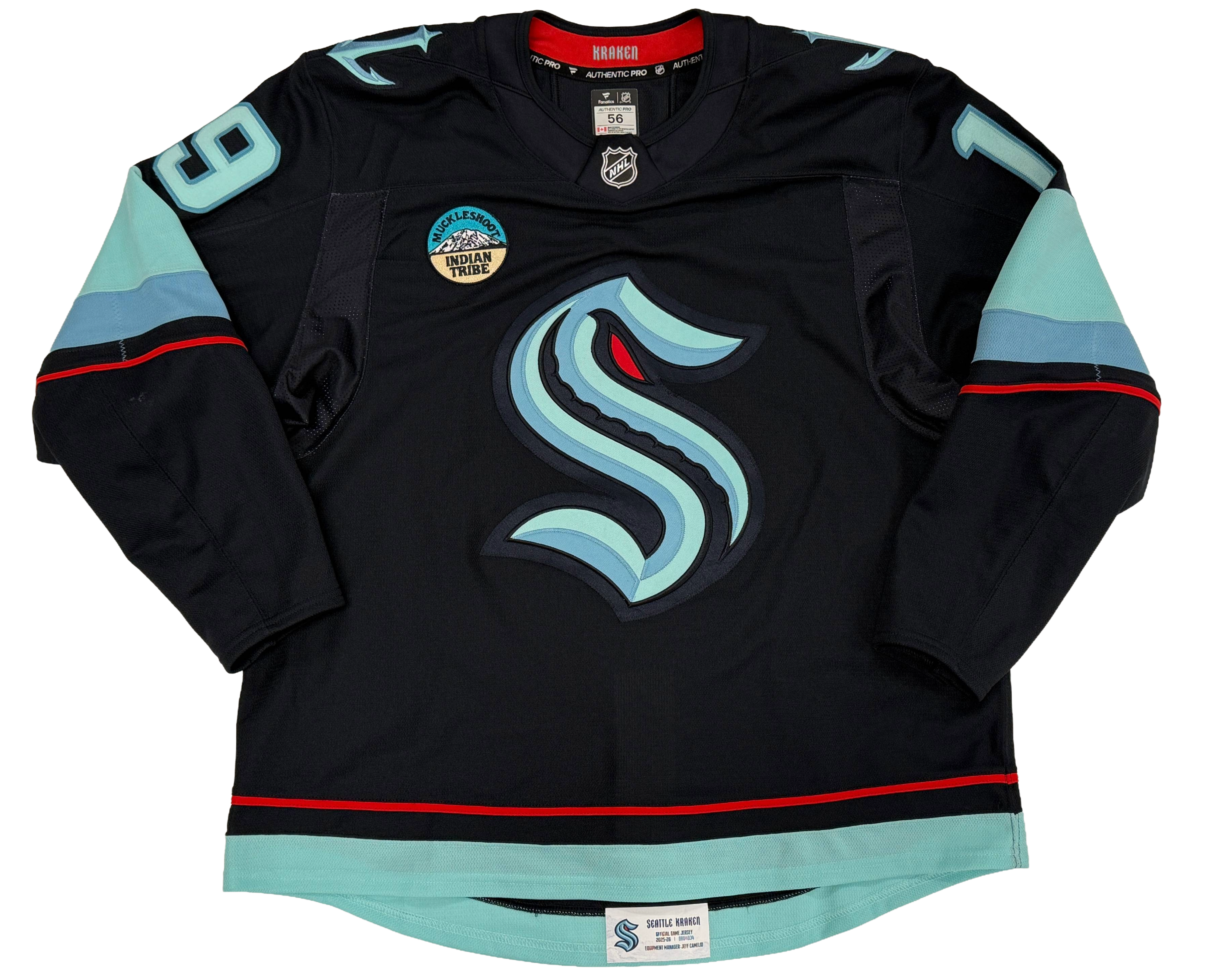 The jersey is part of the Kraken Authentics online auction running from February 28 through March 7. Select jerseys from this auction will be displayed at the Kraken Authentics shop located behind Section 108 at Climate Pledge Arena during the auction period.
