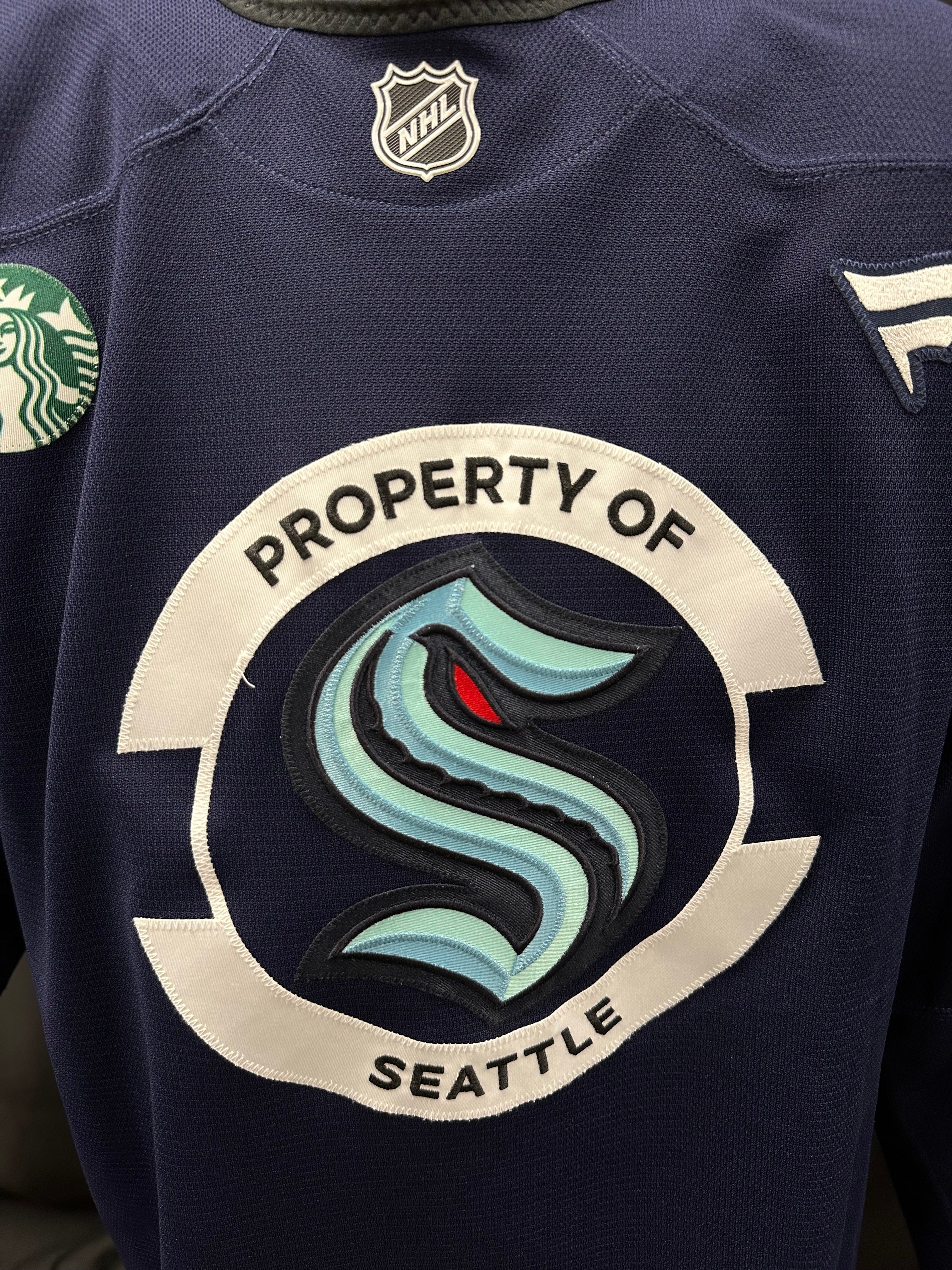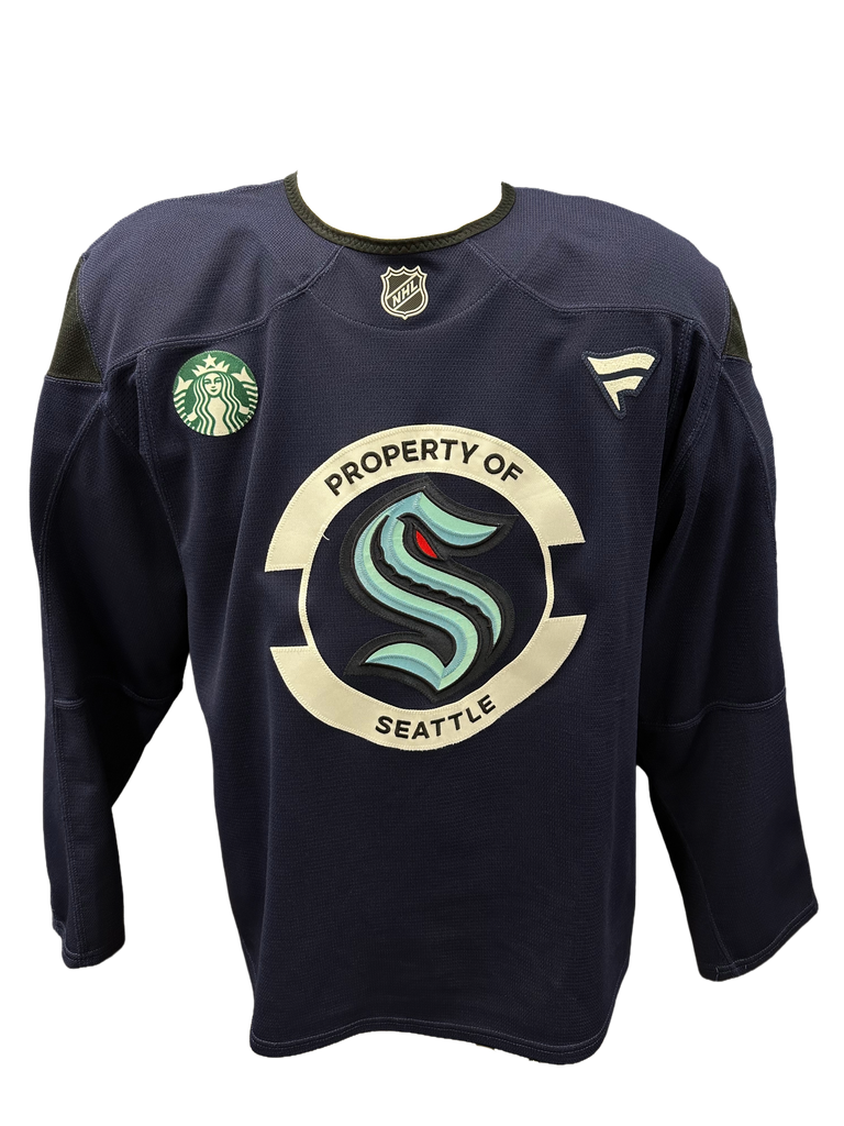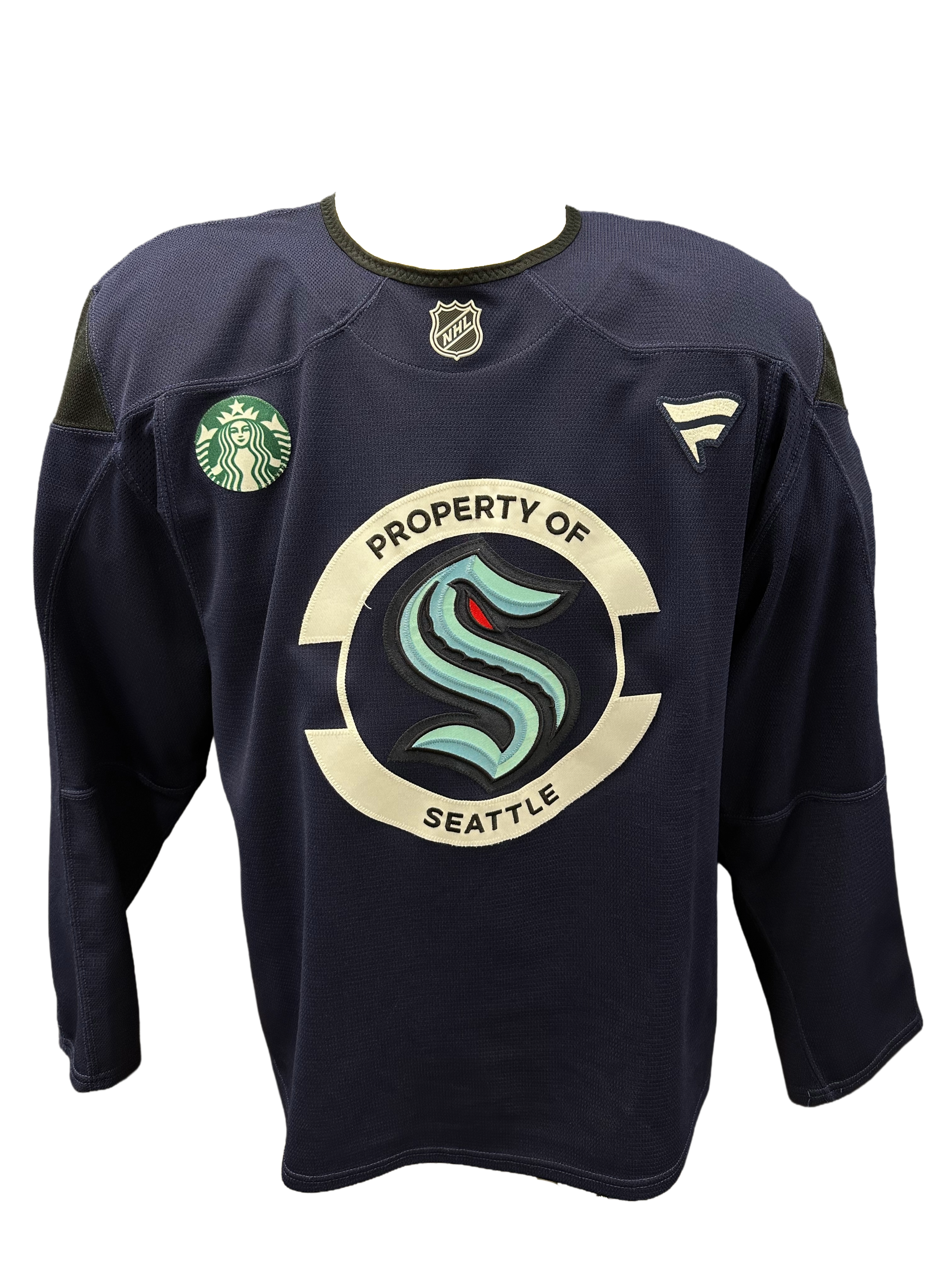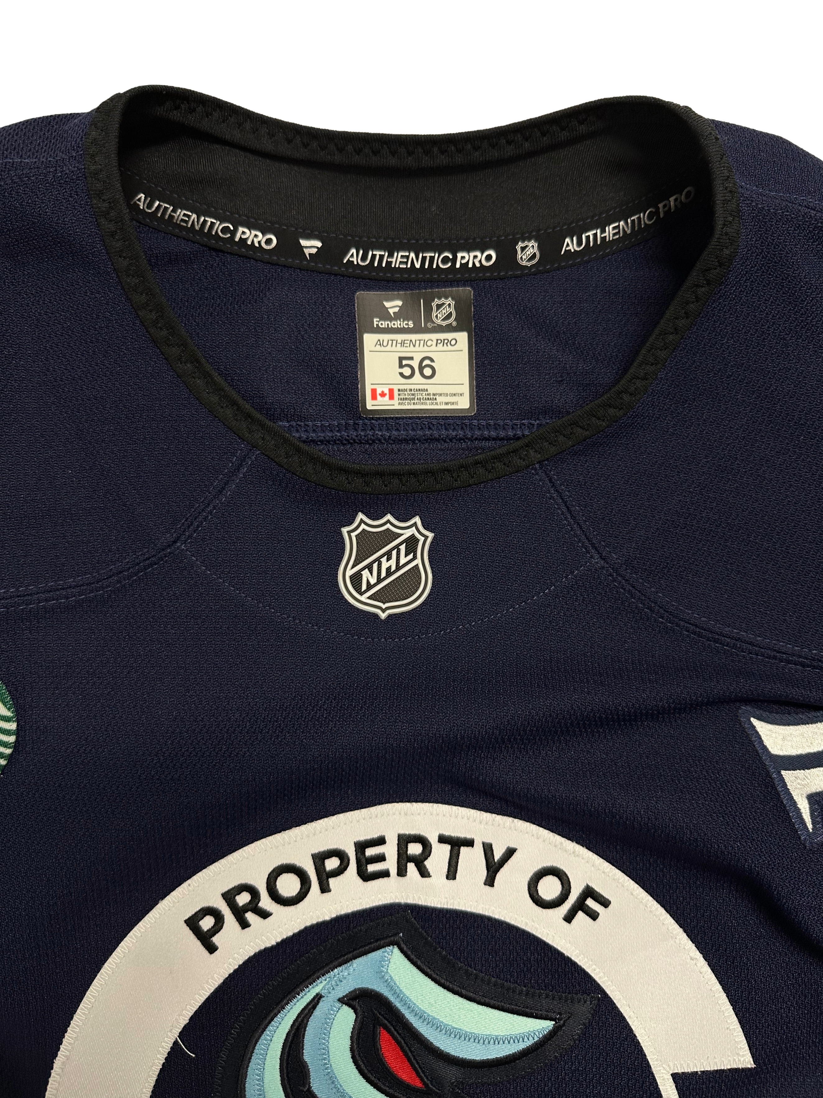 Each jersey includes an official Kraken Authentics Certificate of Authenticity, signed and serial-numbered, verifying that this is a genuine team-worn item.