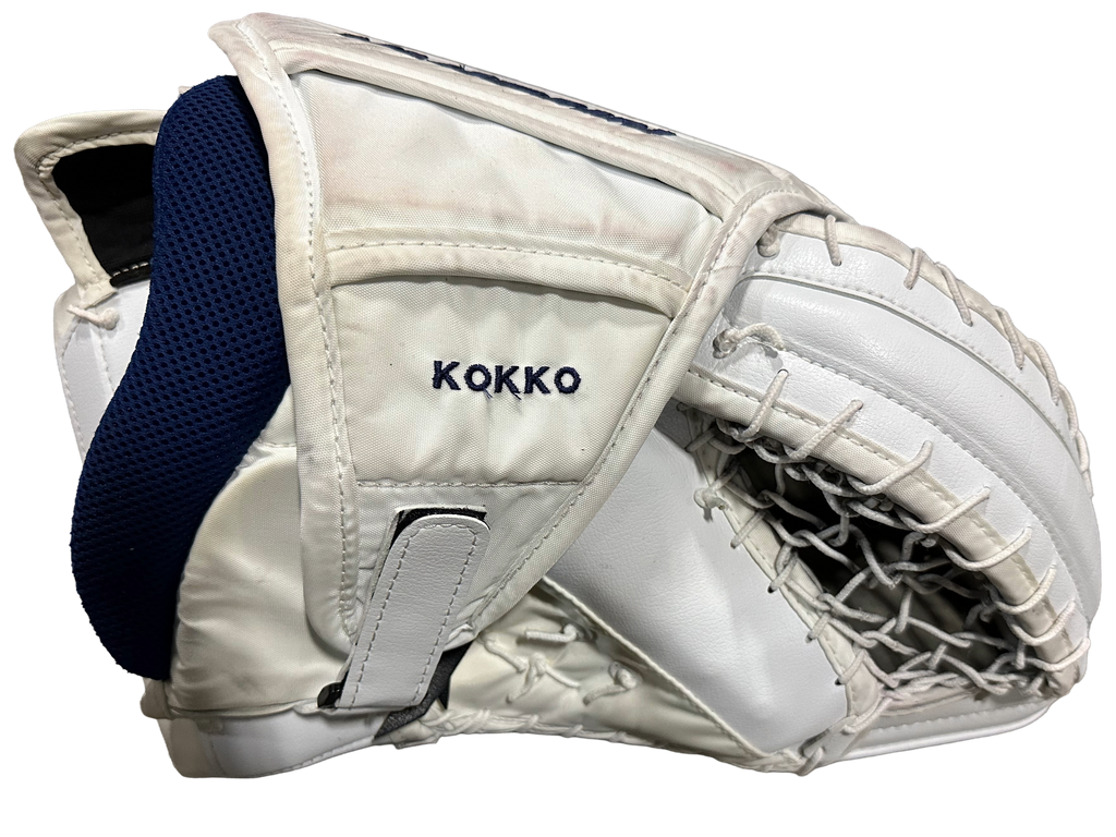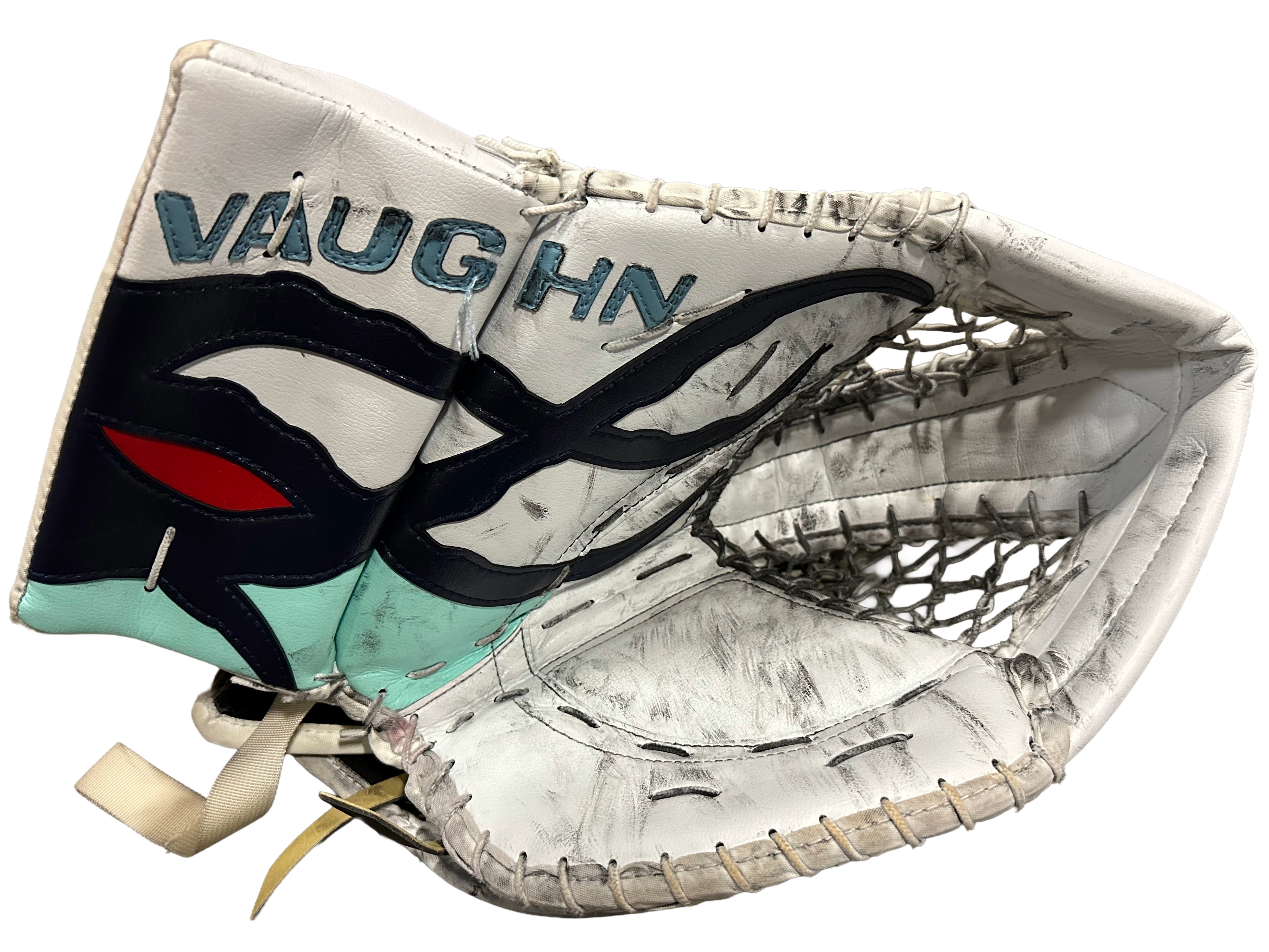 Details: This catch glove was worn by Niklas Kokko during during the 2024-2025 season. Brand: Vaughn.