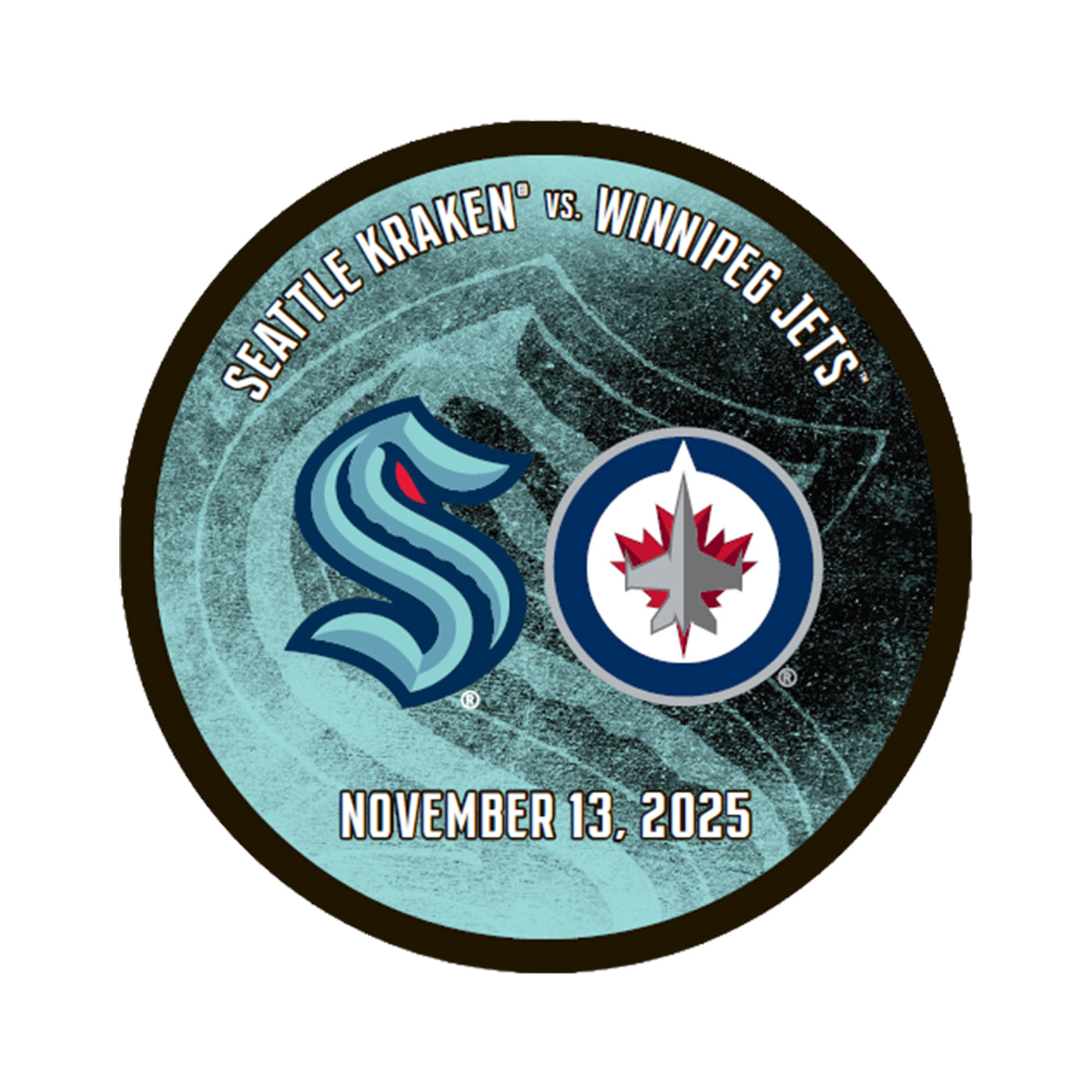 Capture a piece of Seattle Kraken history with the Matchup Puck from November 13th, 2025 when they faced off against the Winnipeg Jets. This commemorative puck allows you to relive the excitement of that game and proudly display your support for the Kraken.
