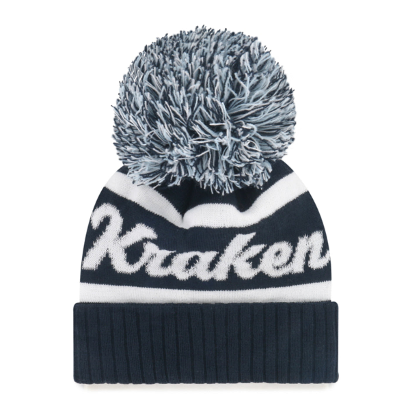 Stay warm and show your Kraken pride with this cozy '47 Spirited Pom Knit. Featuring a signature pom-pom on top and classic team branding, this beanie keeps the chill at bay while you cheer on Seattle's hockey squad. Perfect for game days, casual outings, or any time you want to rep the team in style. Soft, comfortable, and unmistakably Kraken.