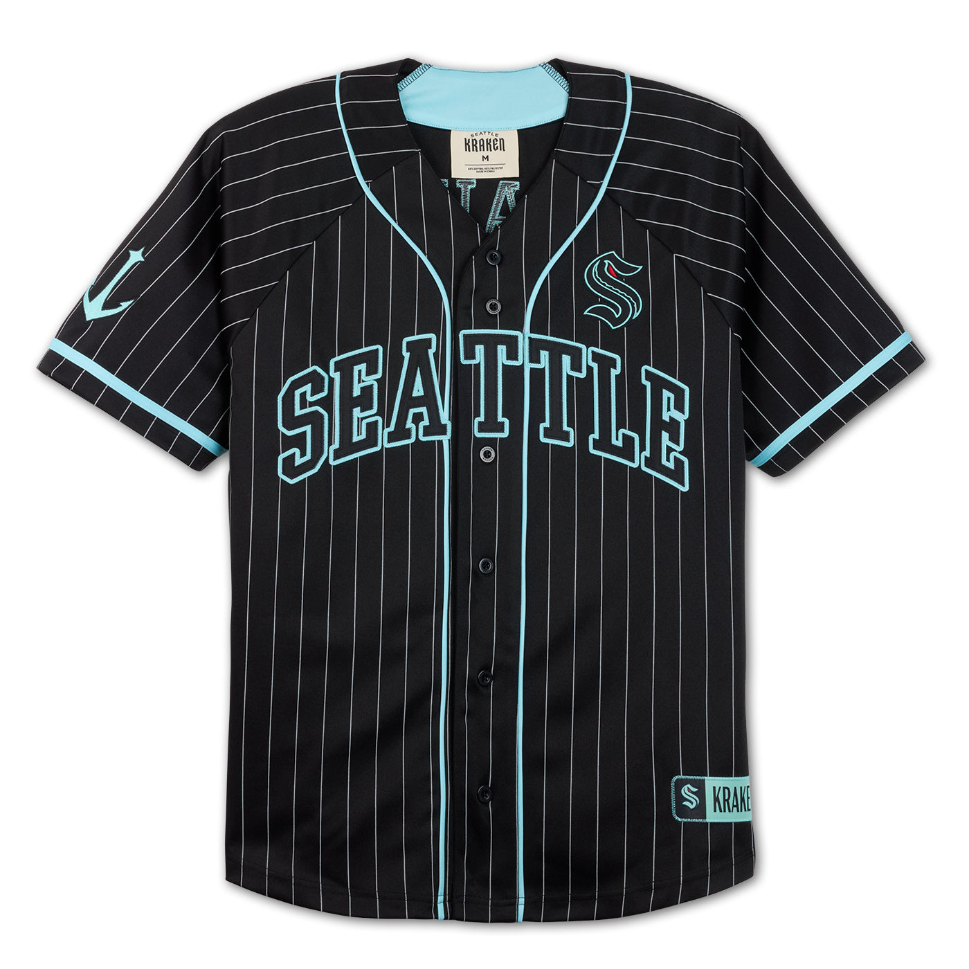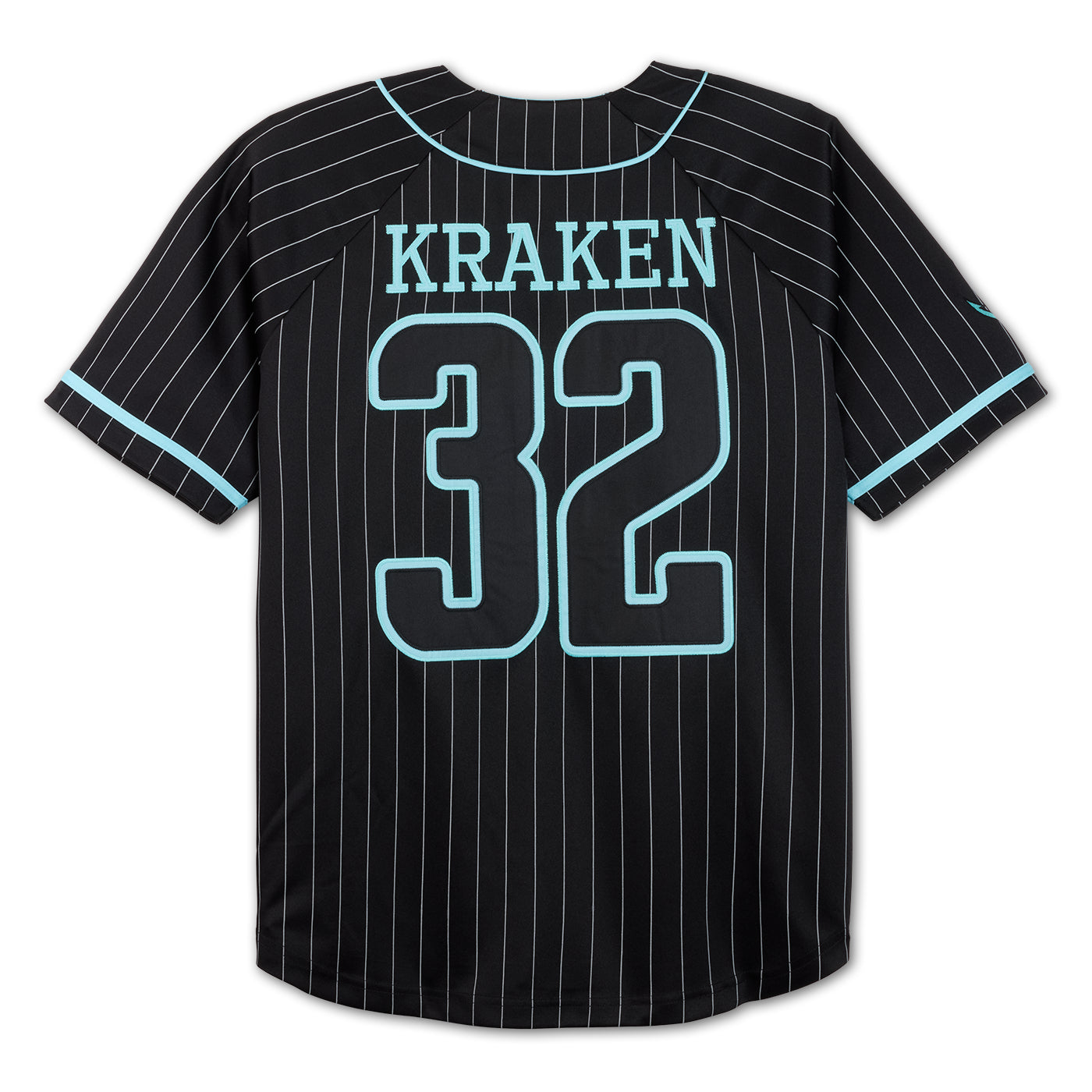 Rock the deep waters of team spirit in this striking Third Jersey inspired Seattle Kraken black baseball jersey. Crafted for fans who bleed tentacle-teal pride, this classic baseball jersey style shirt combines comfort with bold franchise style. Perfect for game day, casual outings, or showing your loyalty to the Emerald City's fiercest squad. Whether you're cheering from the stands or the streets, wear your Kraken colors with confidence and swagger.