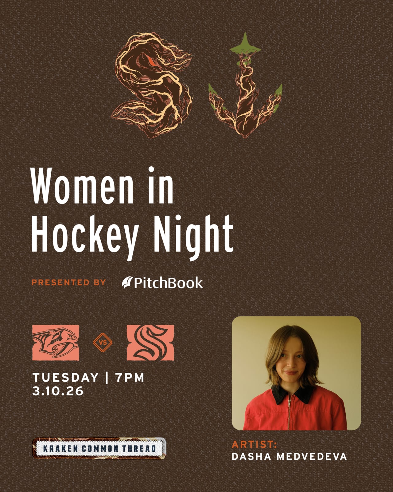 Celebrate the women who hold communities together with this Seattle Kraken Common Thread hat, inspired by artist Dasha Medvedeva's powerful vision. Born in Russia and raised in Seattle, Dasha designed this piece to honor the often-invisible labor of women in homes and communities—especially within immigrant and multi-generational households. Like roots anchoring our Pacific Northwest landscape, women provide the foundation that keeps everything grounded. This hat represents recognition, respect, and solidarity with the strength of women in hockey and beyond.