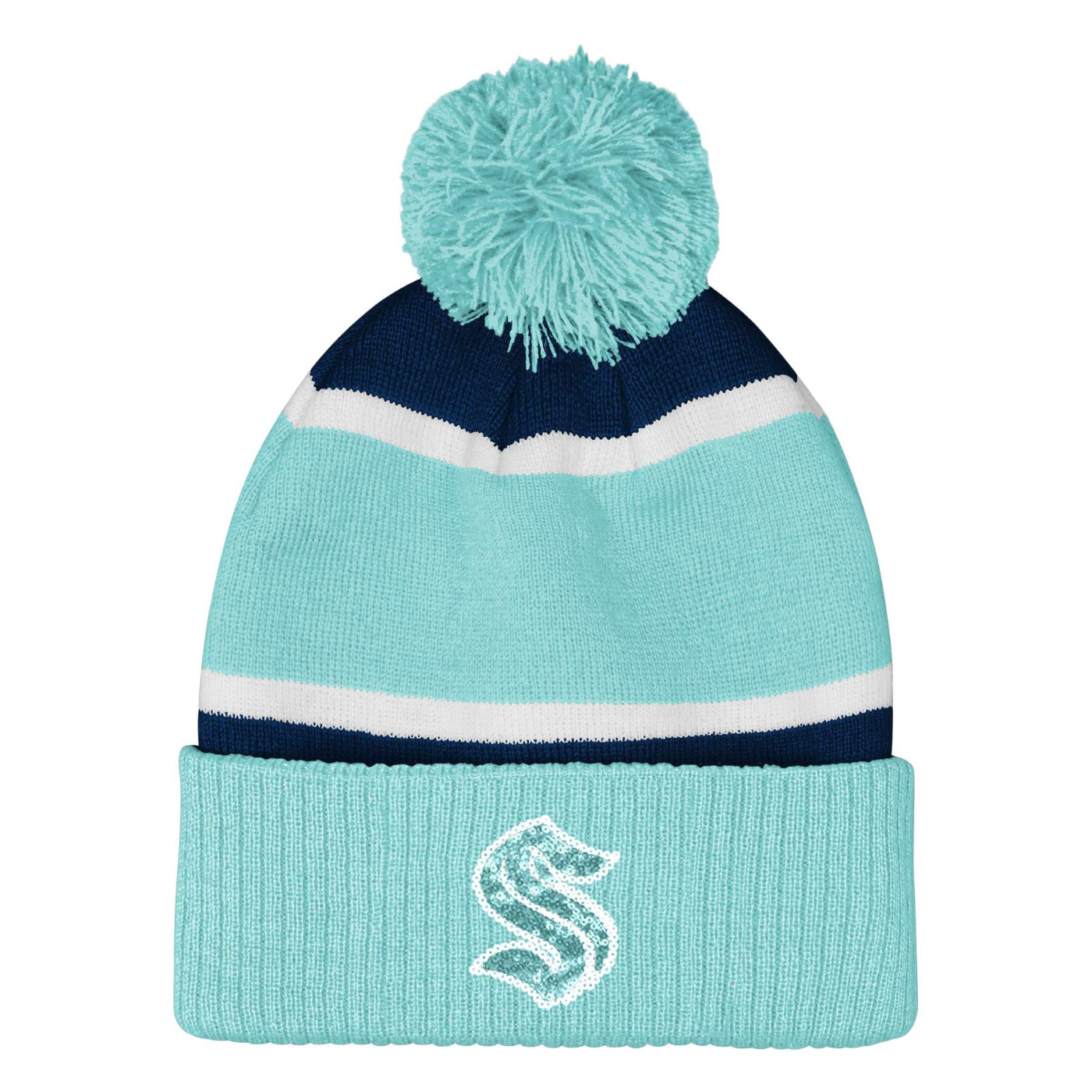 Seattle Kraken Girls Ice Blue Cuffed Pom Beanie