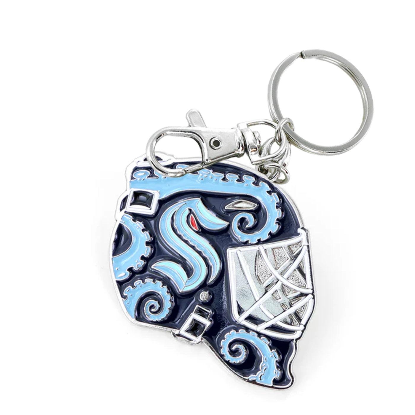 Show off your Kraken pride with this miniature goalie helmet keychain! Perfect for fans on the go, it adds a splash of Seattle spirit to your keys, backpack, or locker. Durable and detailed, this little helmet is a fun way to keep your team close wherever you roam.