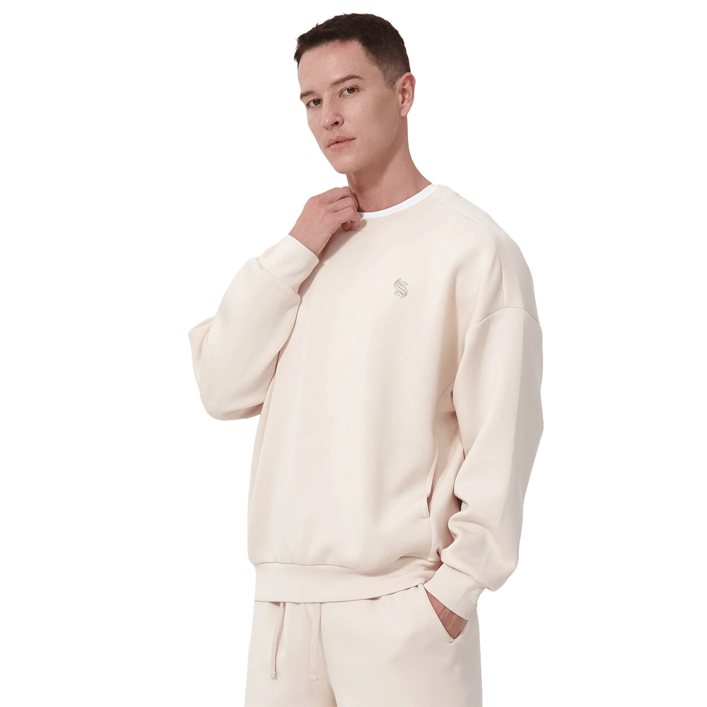 The Luxe Signature Crew is a versatile and stylish addition to any wardrobe, designed with unisex sizing to accommodate everyone. This crew features an oversized drop shoulder silhouette that offers a contemporary and relaxed fit, perfect for those seeking both comfort and style. Made from a blend of 50% recycled polyester, 43% viscose, and 7% spandex, it not only supports sustainable fashion but also provides an ultimate soft feel against the skin. The self-fabric neck trim, inseam pockets, and ribbed body band and sleeve cuffs enhance its functional appeal while maintaining a sleek look. Whether you're lounging at home or out and about, the Luxe Signature Crew is your go-to for a cozy, fashionable layer that works seamlessly across different styles and occasions.