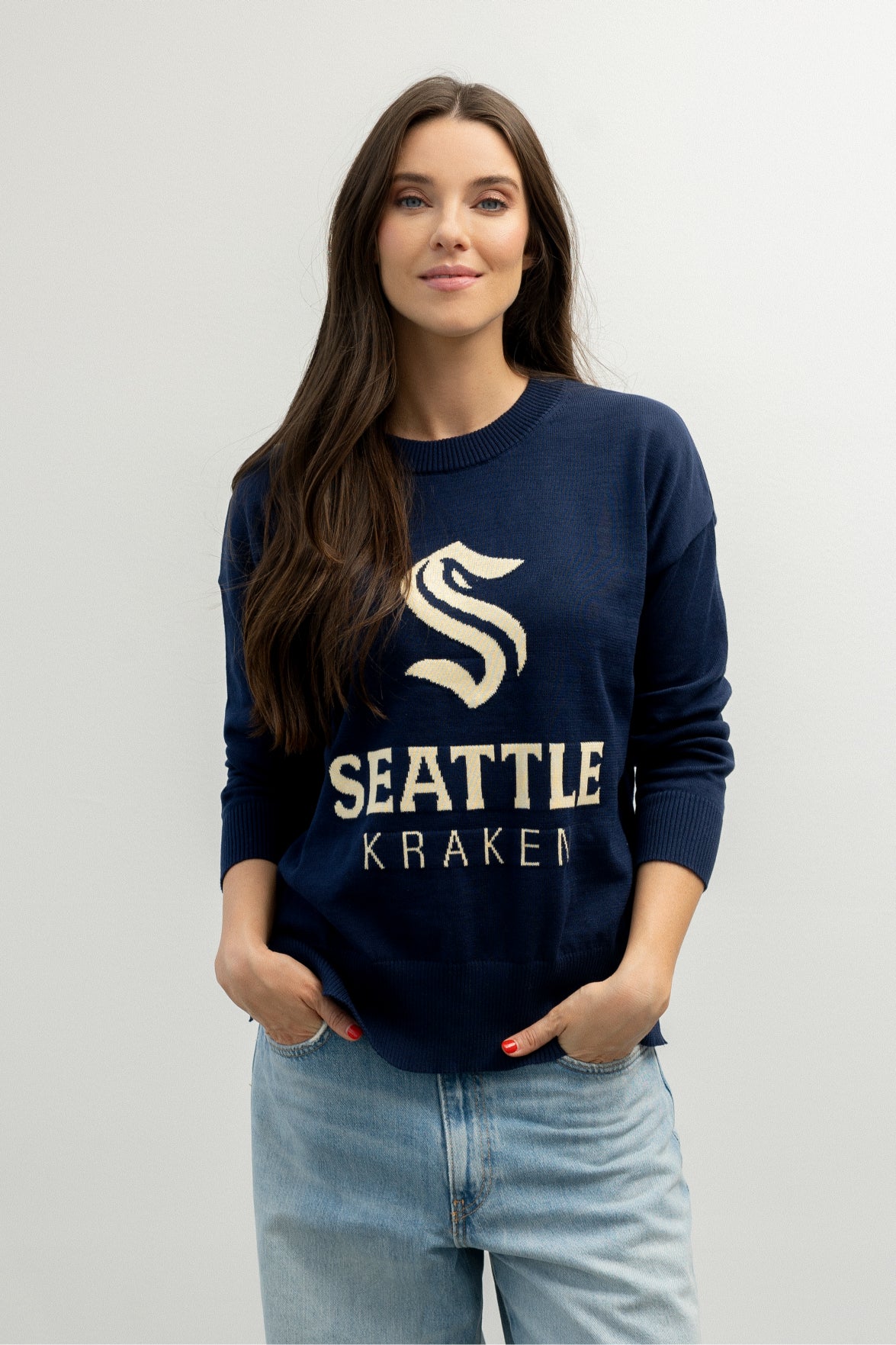 Elevate your game day look with the Seattle Kraken Line Change Team Logo Knit Sweater. This 100% cotton knit delivers soft comfort and bold team pride in one versatile piece. The relaxed fit and lightweight construction make it perfect for cheering at the rink or keeping it casual around the city. True to size, it's the sweater that works as hard as your team does—whether you're bundled up in the stands or making a statement on the streets.
