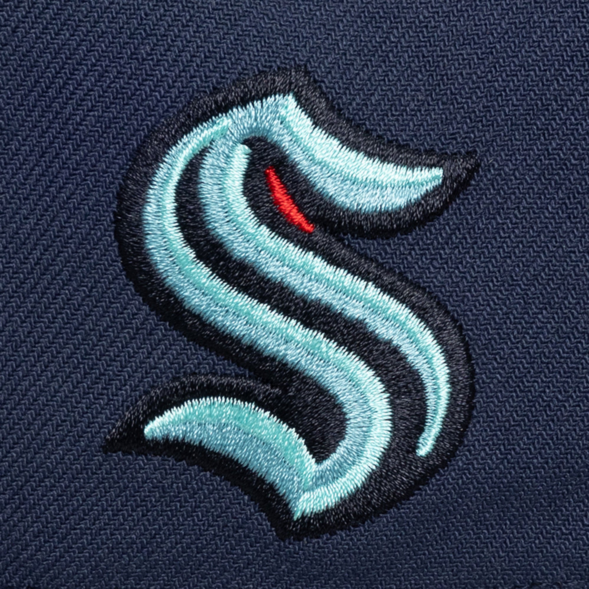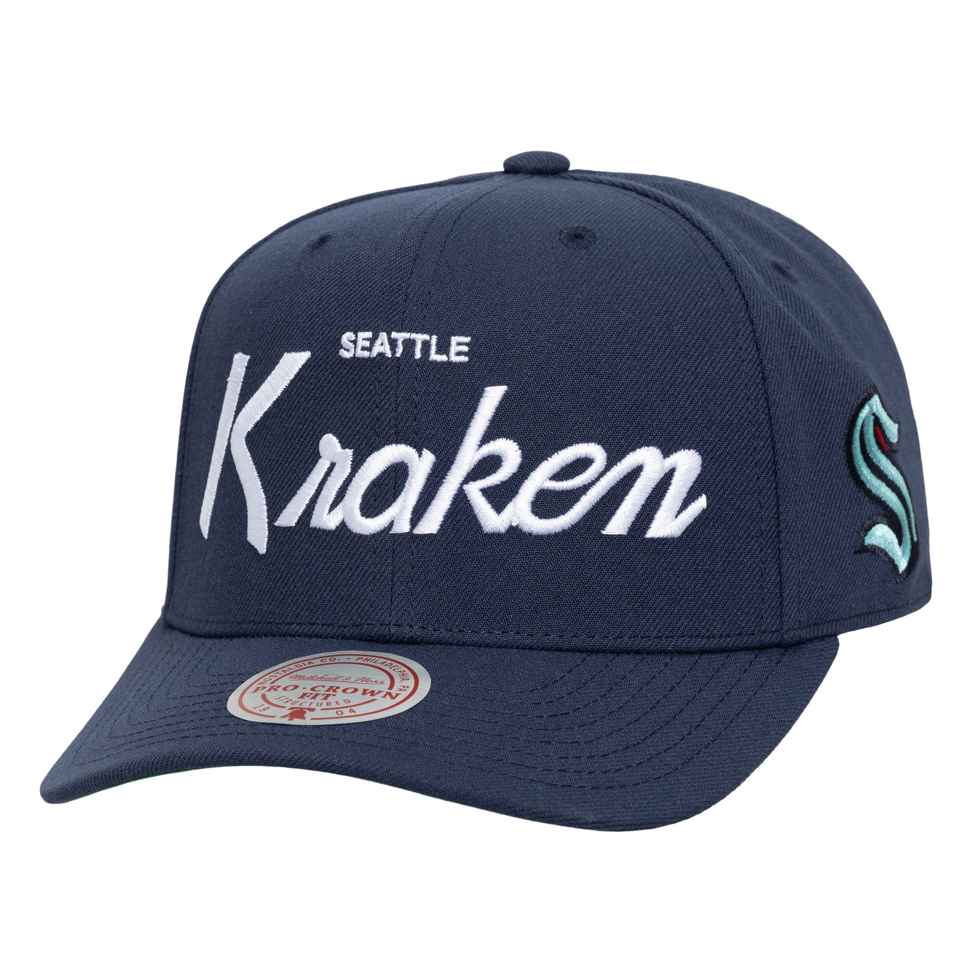 Rock the sidelines style with this Seattle Kraken Mitchell and Ness Head Coach Pro Snapback. Featuring the iconic Kraken primary logo on the left side and bold Seattle Kraken script font across the front, this snapback delivers authentic team pride with a classic, structured fit. The adjustable snap closure ensures a comfortable all-day wear, whether you're cheering at Climate Pledge Arena or showing your support around the city. Perfect for dedicated Kraken fans who want premium headwear that captures the team's signature look.