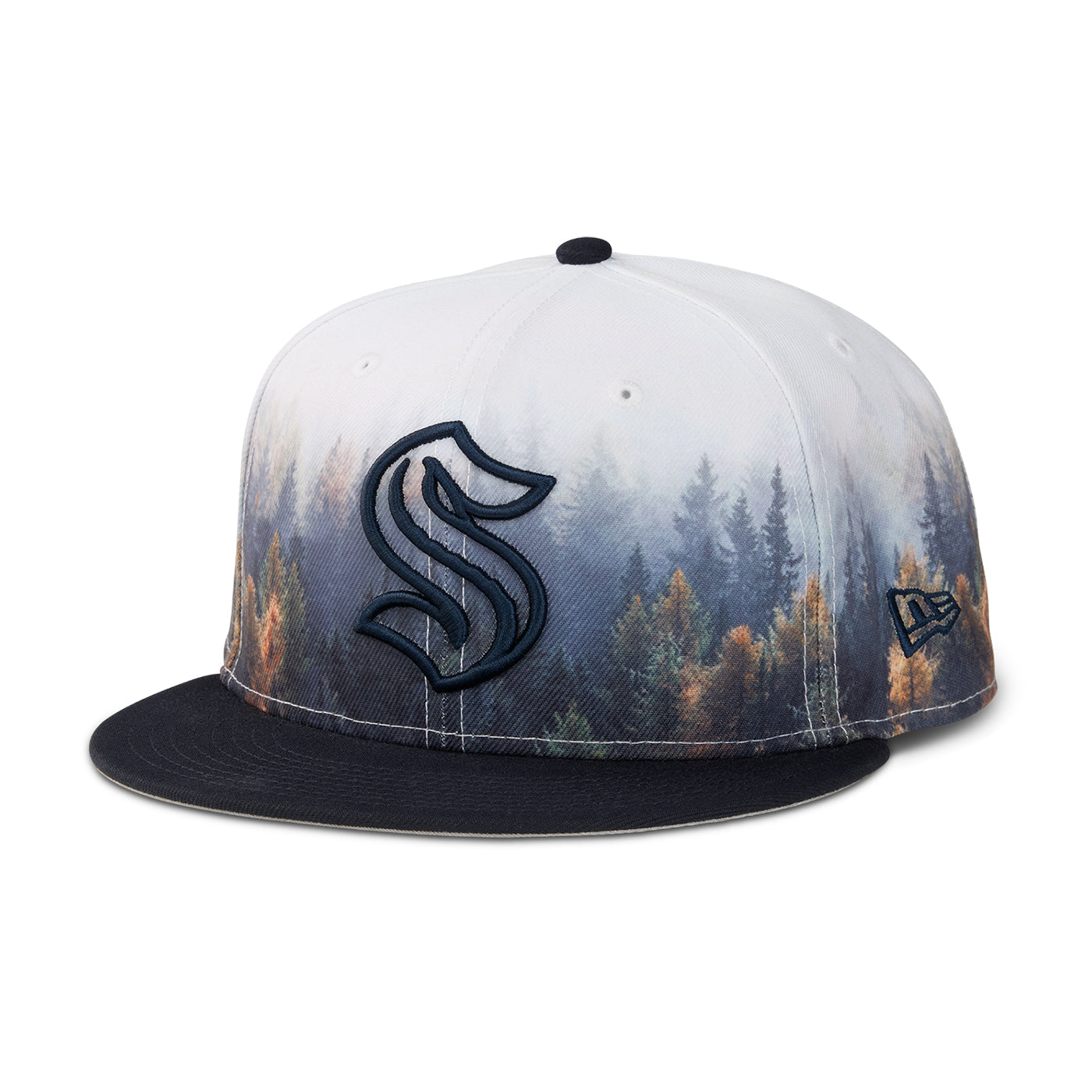 Rock the waters with this Seattle Kraken New Era 950 snapback, featuring the team's iconic primary logo embroidered in crisp detail. The photoreal design showcases a stunning Pacific Northwest forest backdrop that captures the wild spirit of the region. Adjustable snapback closure ensures a perfect fit for any fan, while the premium construction delivers durability game after game. Whether you're cheering from Climate Pledge Arena or repping your squad around town, this cap brings authentic team pride with a touch of Pacific Northwest flair.