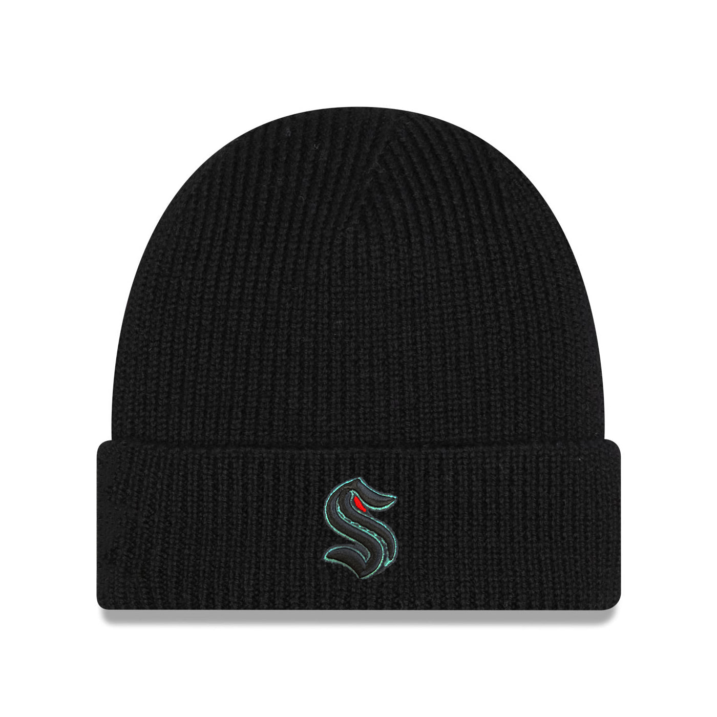 Light up the night with this eye-catching Seattle Kraken beanie that brings your team spirit to life! Featuring the bold third jersey design logo, this New Era knit cap turns heads whether you're at Climate Pledge Arena or braving the chilly Pacific Northwest weather. The snug cuff keeps you cozy during those intense overtime periods, while the premium knit construction ensures this beanie stays game-ready season after season. Perfect for showing off your Kraken pride with a little extra flash!