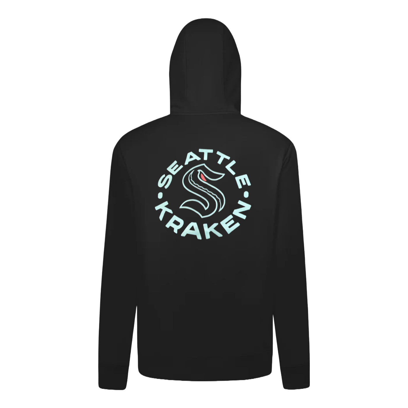 The Seattle Kraken Third Jersey Podium Full Zip Hoodie is ideal for both casual wear and active days. Featuring forward shoulder seams for enhanced mobility, this hoodie includes a full front zip with an attached, drawcord-adjustable hood for customizable coverage. The double front kanga pockets provide ample storage and a place to keep your hands warm. Ribbed body band and sleeve cuffs ensure a secure and comfortable fit. Crafted from a durable blend of 80% cotton and 20% polyester, the Podium full zip is built for lasting comfort and everyday wear.