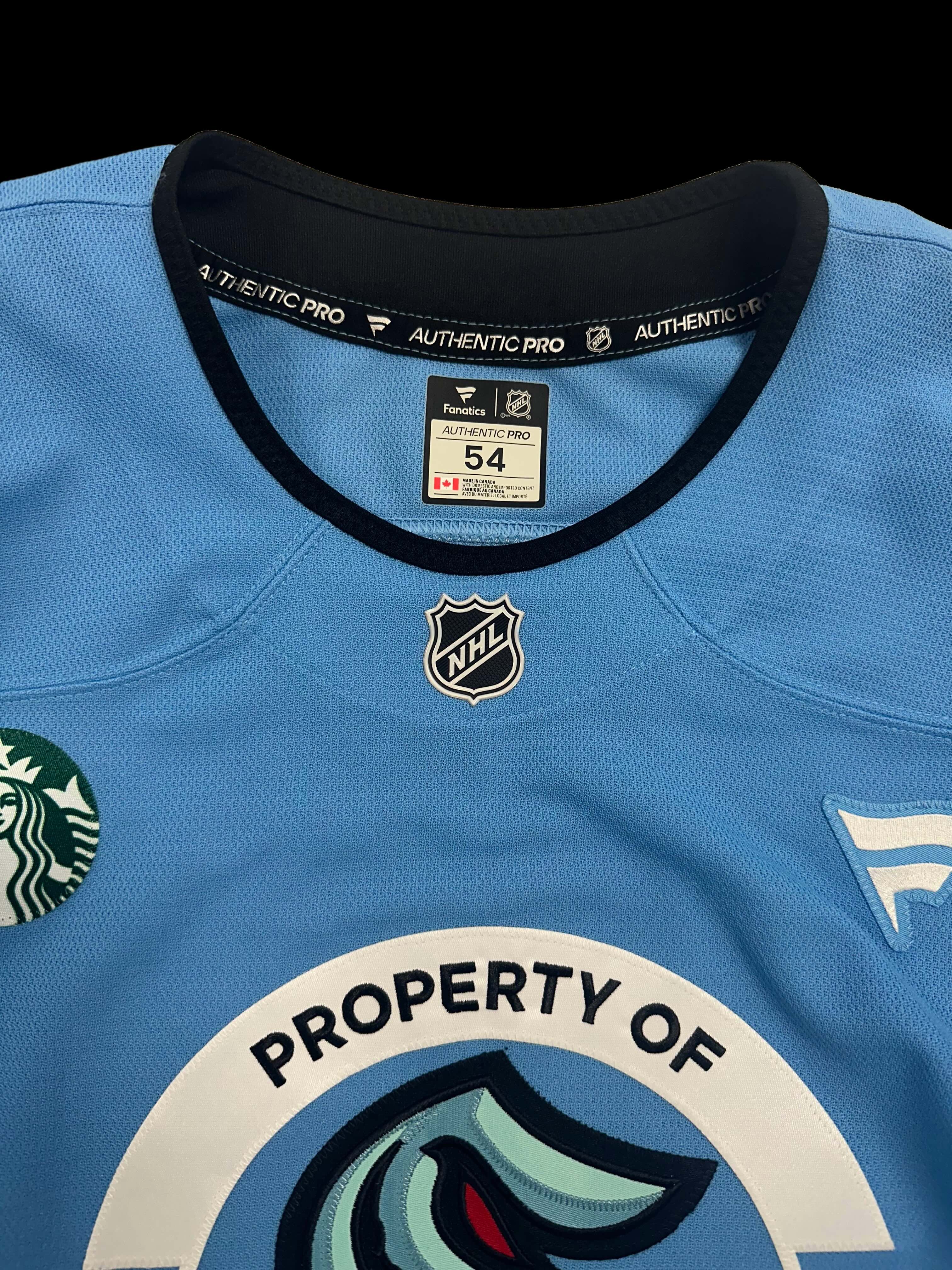 Each jersey includes an official Kraken Authentics Certificate of Authenticity, signed and serial-numbered, verifying that this is a genuine team-worn item.