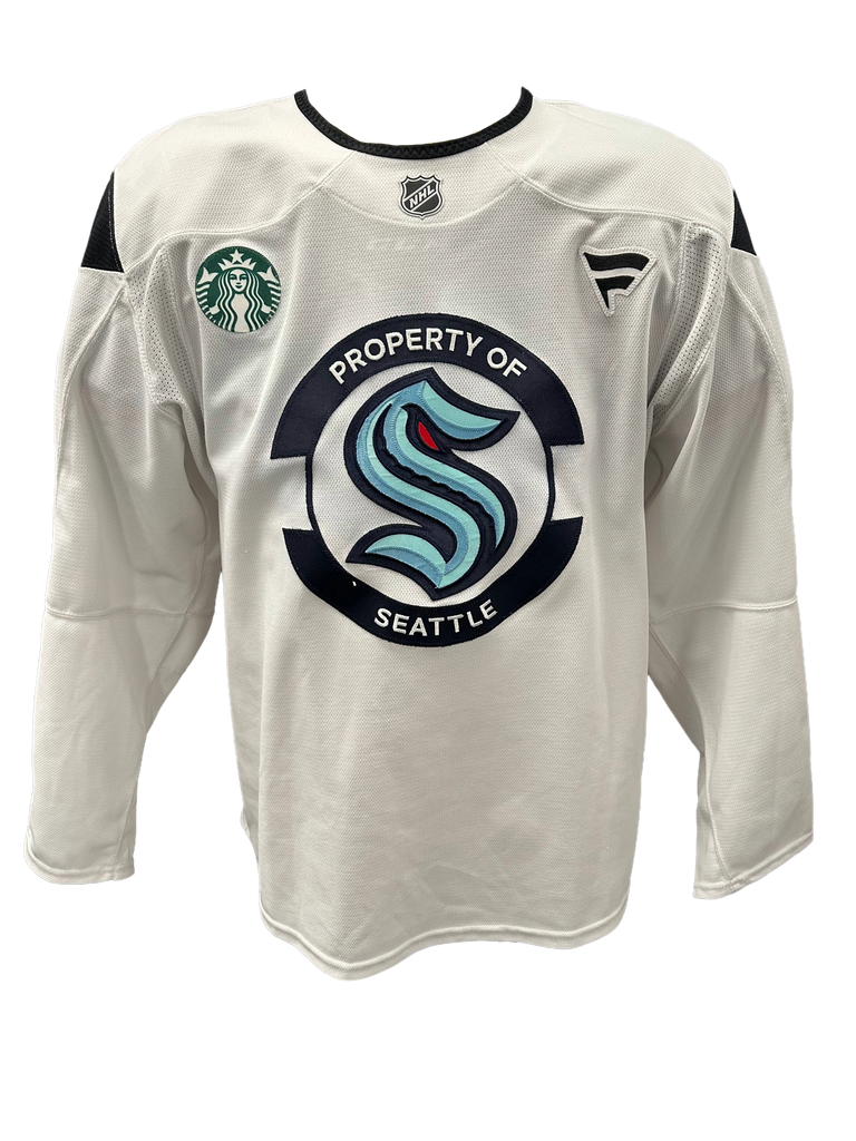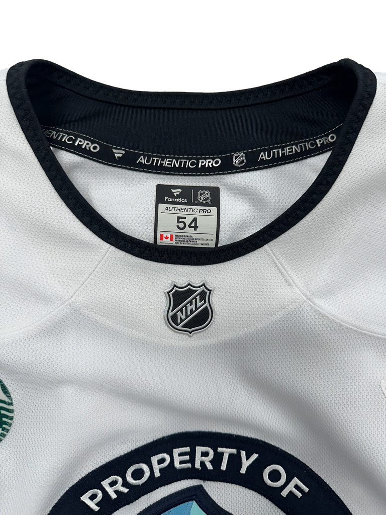 Each jersey includes an official Kraken Authentics Certificate of Authenticity, signed and serial-numbered, verifying that this is a genuine team-worn item.