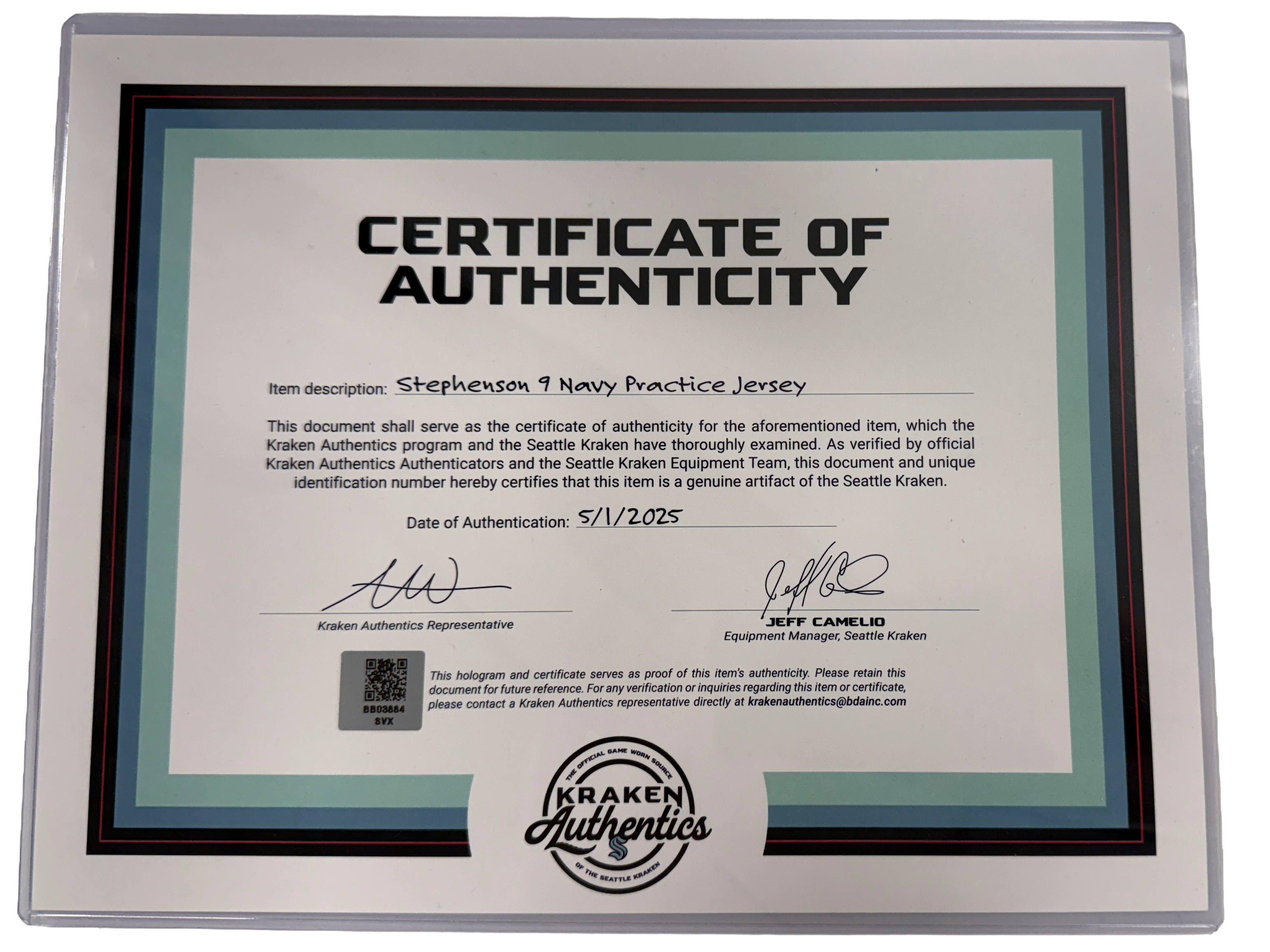 Each jersey includes an official Kraken Authentics Certificate of Authenticity, verifying that this is a genuine worn item.
